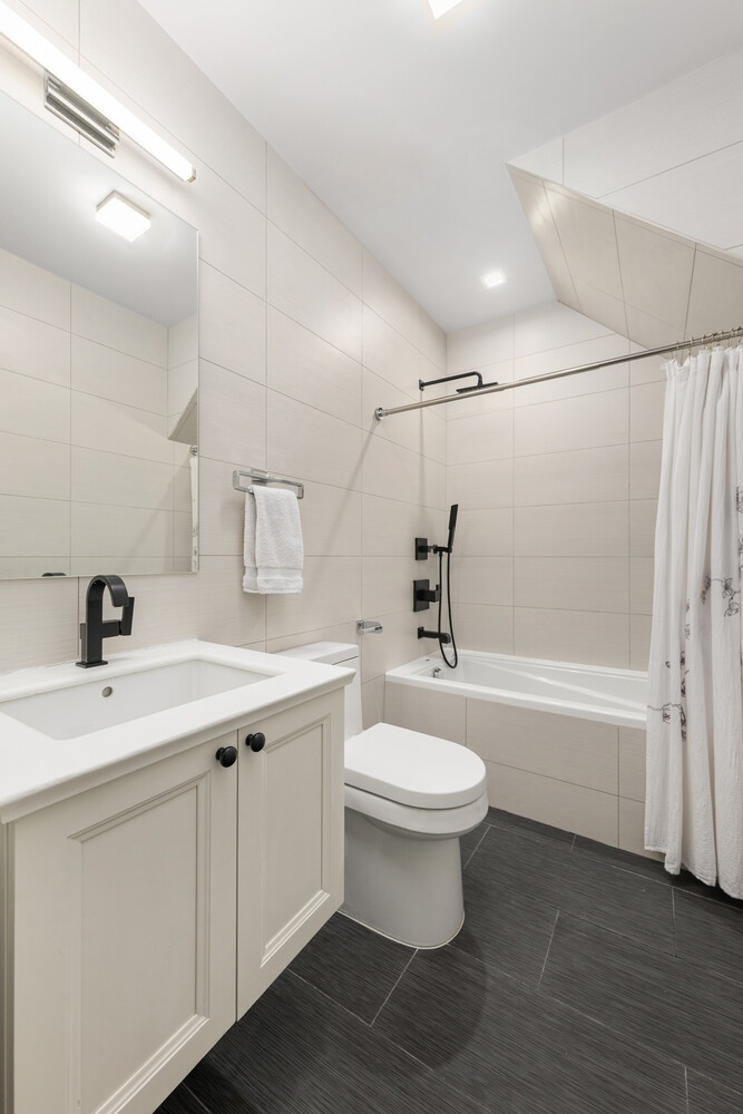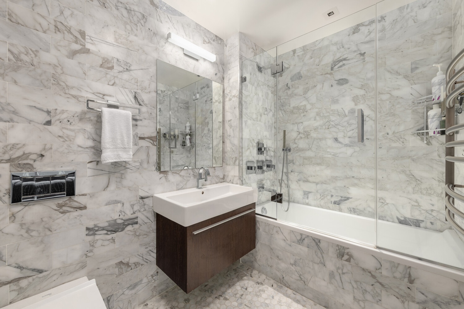 Tucked toward the rear of the home, the king-sized primary suite offers a peaceful retreat with a spacious walk-in closet. The primary bathroom is marble-clad with sleek Duravit fixtures, Kohler hardware, floating vanity and toilet. Radiant heated floors and a heated towel rack ensure comfort all year long. The secondary bedroom on this level is equally as impressive offering oversized dimensions and excellent closet space.