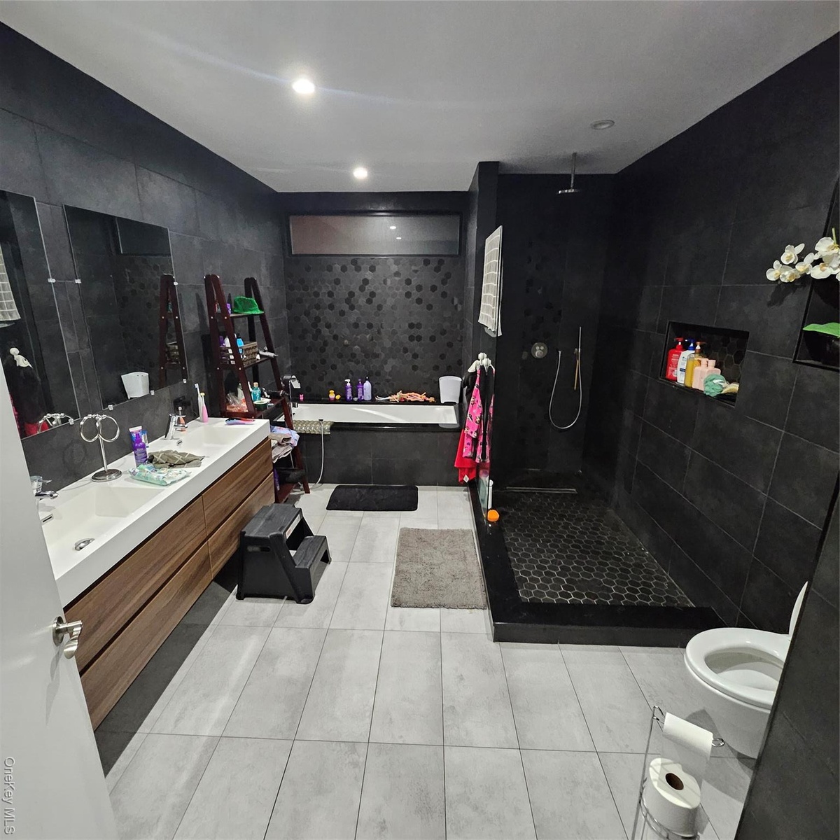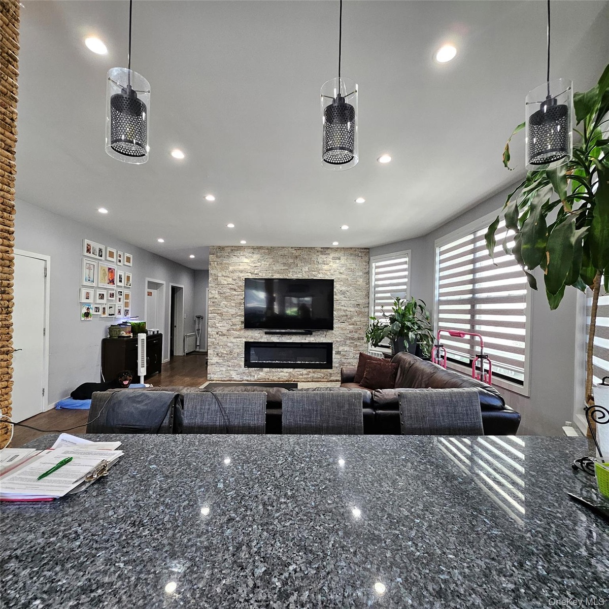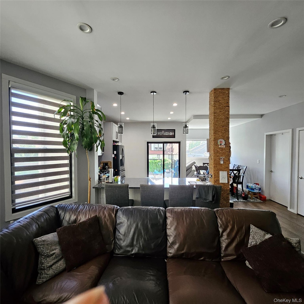 Hurry Up & come see this Beautiful LARGE Renovated Legal 2 Family! LOTS OF 'WOW's' on every floor! Owner Understands the 'Art of Quality & Luxury Updating'... House was converted down from a legal 3 family to a LEGAL 2 family = Its Big! 1st floor Unit: Unit #1: High Ceilings, Beautifully Stained Solid Wood Floors, Recessed Lights, Open Concept New Eat In Kitchen to Open Concept Large Livingroom w/ Gas Wall Fireplace on Entertainment Wall, Over Sized Full Hall Bath w/Heated Floors AND an additional 1/2 bath/powder room! Nicely Appointed 3 BR's, Split Units (thru out all 3 floors)...2nd Legal Income Producing Unit = UNIT #2: *DUPLEX* = 2 floors of Open Floor Concept! 2nd and 3rd floors are considered a legal combined unit: Breakdown = 2nd Floor w/ Open Concept Livingroom/ Dinette to Kitchen, 3 BR's, Full Hall Bath w/tub, Hall Closet w/Stacked Washer/Dryer, Door to Private Deck Over Looking rear yard, Then wide hallway to wide staircase up to 3rd floor that has a den, 2 BR's, Full Hall Bath = Making the 2nd Unit into a total of 5 Bedrooms + 2 Full Baths , a Livingroom and a den = 2 floor DUPLEX! Interior thru out is ALL Updated and BRIGHT! ALL windows updated w/ Low Heat Gas & Tinted, Security Camera System control and Monitor in Bsmt, entire house wired and has a Central closet on 1st flr. Outside? Large 'Rocking Chair' Front Porch, Long driveway for 3 car parking Before the fenced yard w/ Paver driveway in rear to Large 1.5 Detached Garage.