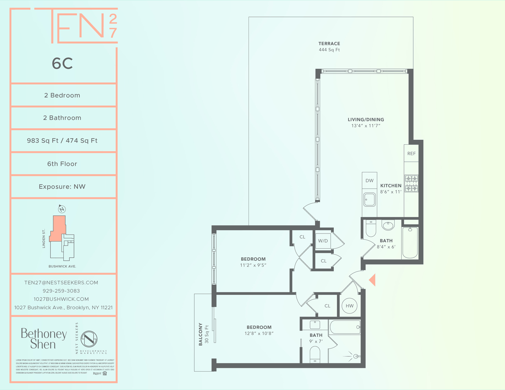 Introducing penthouse 6C at TEN27— this beautifully crafted home combines an expansive interior with an extensive private outdoor terrace, delivering a refined 2-bedroom, 2-bathroom home in the heart of Bushwick.
