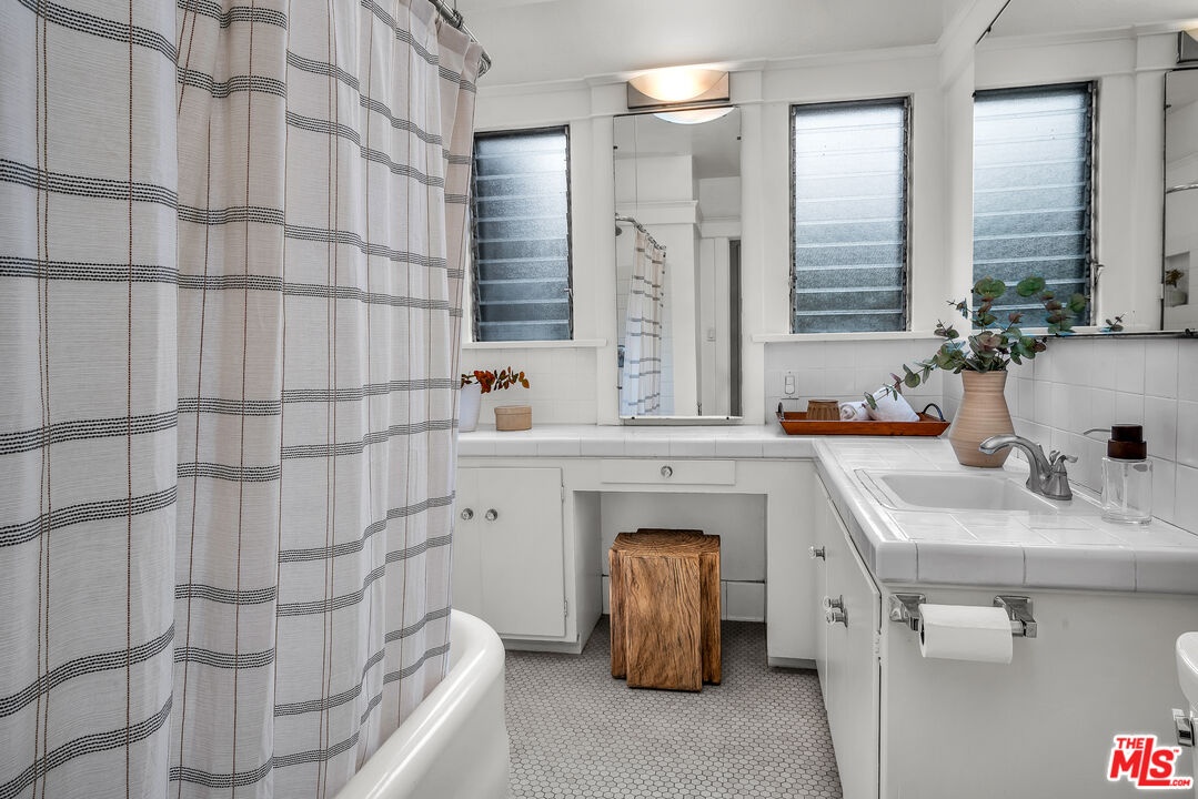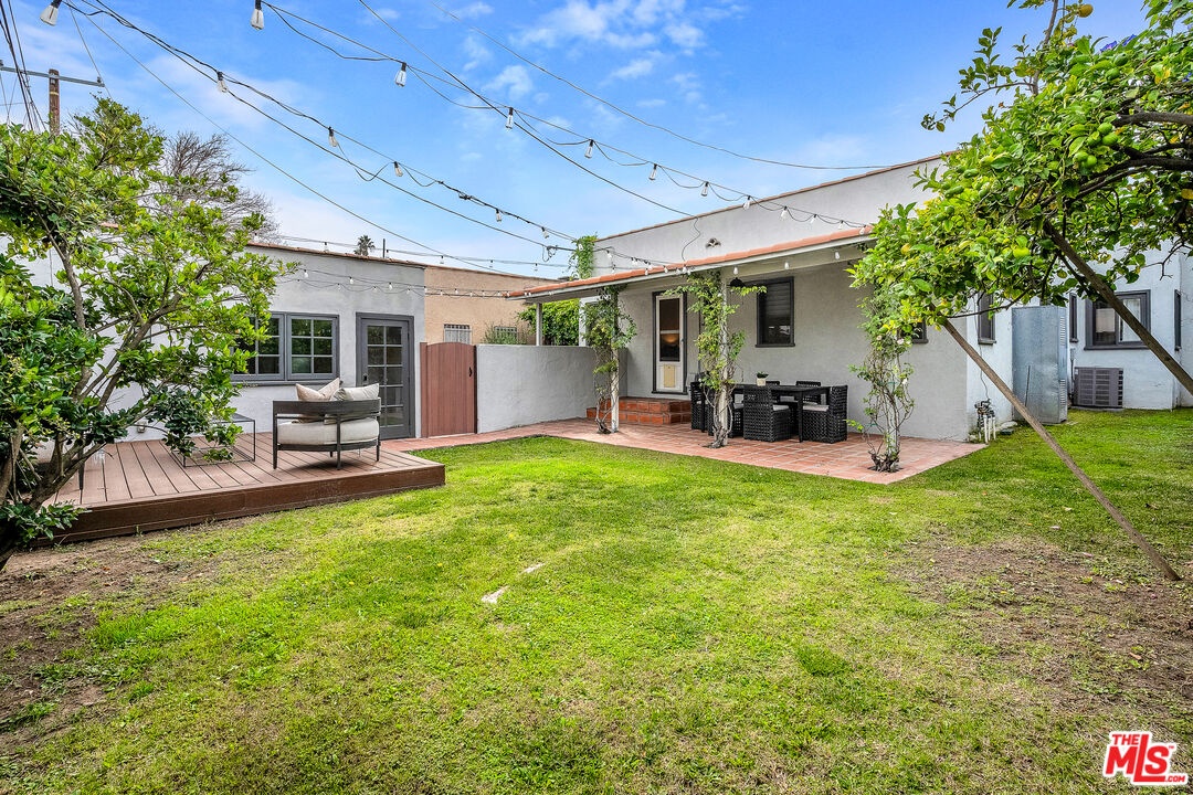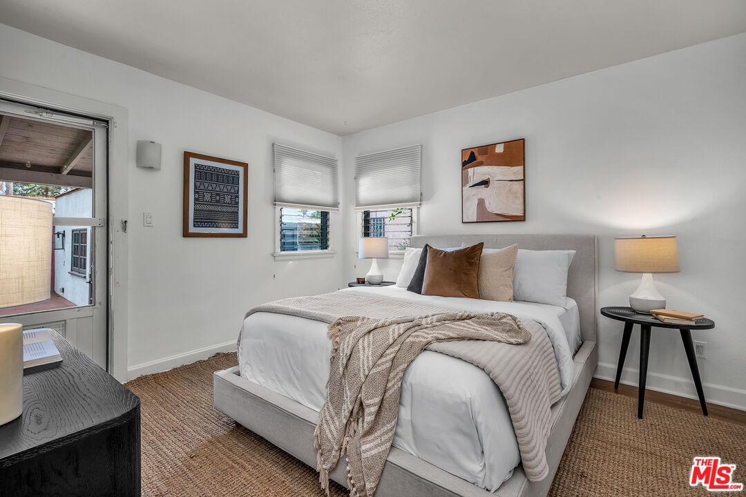 Ideally located in the heart of Larchmont Village, this charming home will captivate you from the moment you arrive. An electric gate opens to a secure driveway, offering both convenience and peace of mind. The inviting front patio provides the perfect spot to enjoy your morning coffee or unwind in the evening. Inside, a wealth of original architectural details awaits beautiful coved ceilings, arched doorways, and elegant French windows. The sunny, spacious living room features gleaming hardwood floors and a stunning Batchelder fireplace as its centerpiece. The formal dining room easily accommodates large gatherings, while the kitchen offers new countertops, ample storage, and an adjacent laundry room for added functionality. The large bathroom includes a tub and a comfortable vanity area, ideal for starting your day in style. The bright and airy primary bedroom offers a tranquil retreat, and the second bedroom opens directly to the private backyard an oasis with multiple areas for dining, relaxing or play. The converted garage serves as a versatile office or creative studio, complete with custom built-ins and French doors. Additional features include central air conditioning and a security system. Just blocks from Larchmont Boulevard's beloved shops, cafes, and boutiques, this very special home perfectly blends original character with modern comfort in one of Los Angeles's most desirable neighborhoods.