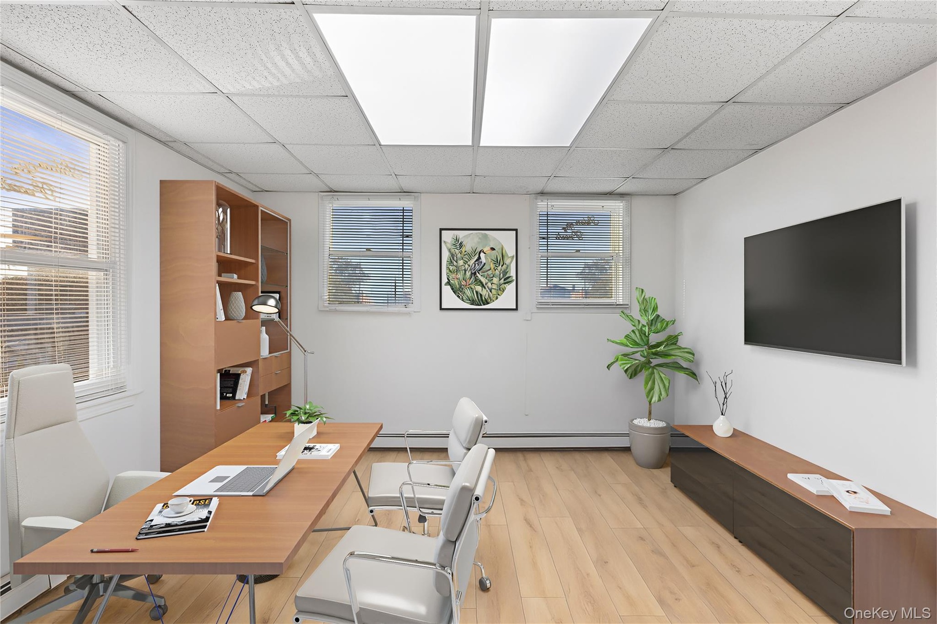 Discover a versatile three-story commercial office building with a full basement with outside entrance. Offering 3,600 sq ft of flexible space ideal for professional, medical, law office, physical therapist, or other service-based businesses. The property features a well-maintained exterior with stone and siding accents, ample natural light throughout, an office-style kitchen, and a layout that supports both private offices and open workspaces. A standout advantage is the private on-site parking in the rear, providing convenience for both clients and staff. Situated in a prime Hicksville location near major roadways, retail centers, and transportation, this building offers excellent visibility, accessibility, and adaptability for a growing or established business. **Also open to leasing the 1st floor and the basement** **Building can be delivered vacant or with paying tenant on 2nd floor.**