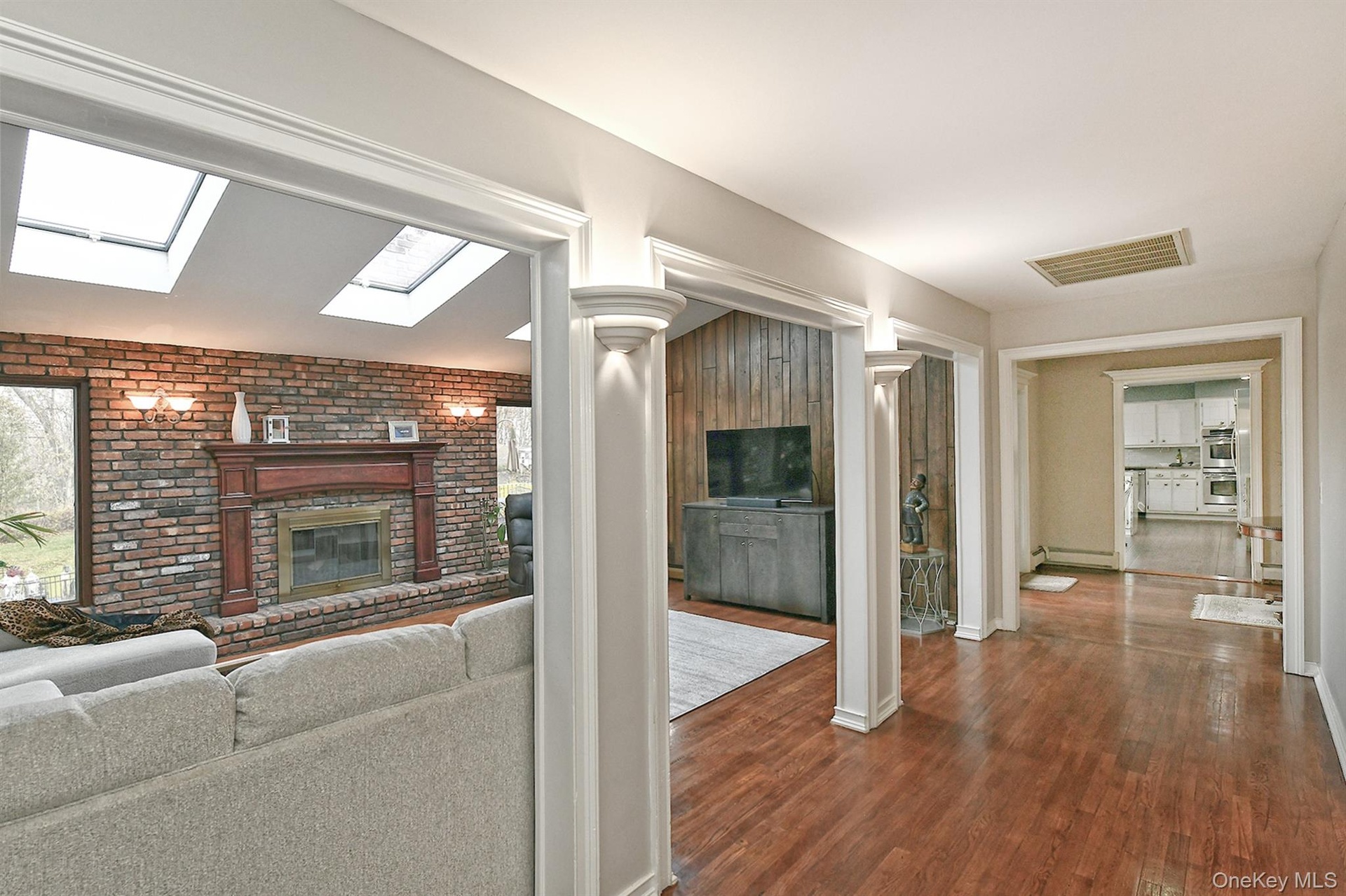 Fabulous expanded ranch within the coveted white oaks section of Dix Hills nestled in the Half Hollow Hills School District. This fabulous expanded ranch blend spacious luxury with thoughtful design every room exudes a palatial sense of space enhanced by wide hallways, abundant, natural light, and handicap accessible features, including a wheelchair friendly elevator. The main level has five bedrooms inclusive of the two bedroom guest quarters, which provide privacy for your visitors as well as yourself. The primary bedroom has a gorgeous en-suite and two huge walk-in closets (One of which is adorned with Windows and can accommodate a vanity). Entertain effortlessly in the formal living and dining room, relax in the inviting den or gather in the eat-in kitchen with granite countertops and ample workspace. Additional conveniences include a spacious laundry room and a welcoming entry foyer. Enjoy mature landscaping to emphasize privacy, in ground heated pool, backyard ground level access from finished basement, special design smoking room, pool table room, intercom, multilevel patios, natural gas heat, fido fence, inground sprinklers, and skylights are just a few enemies to boast about. Abundant large windows showcase magnificent views and fill the home with warm natural light. This residence offers both elegance and comfort. A must see, in person experience is awaiting you!