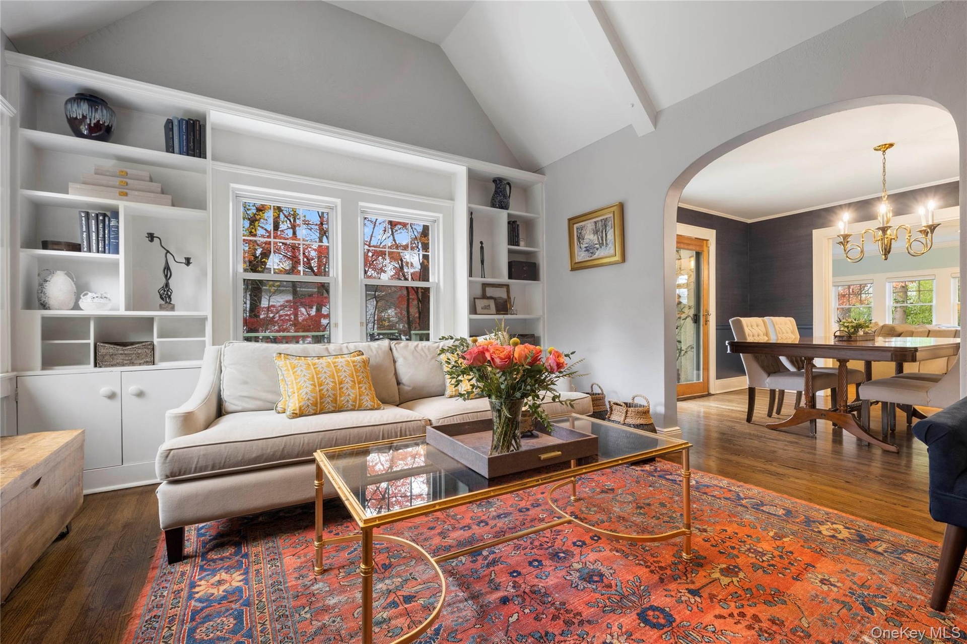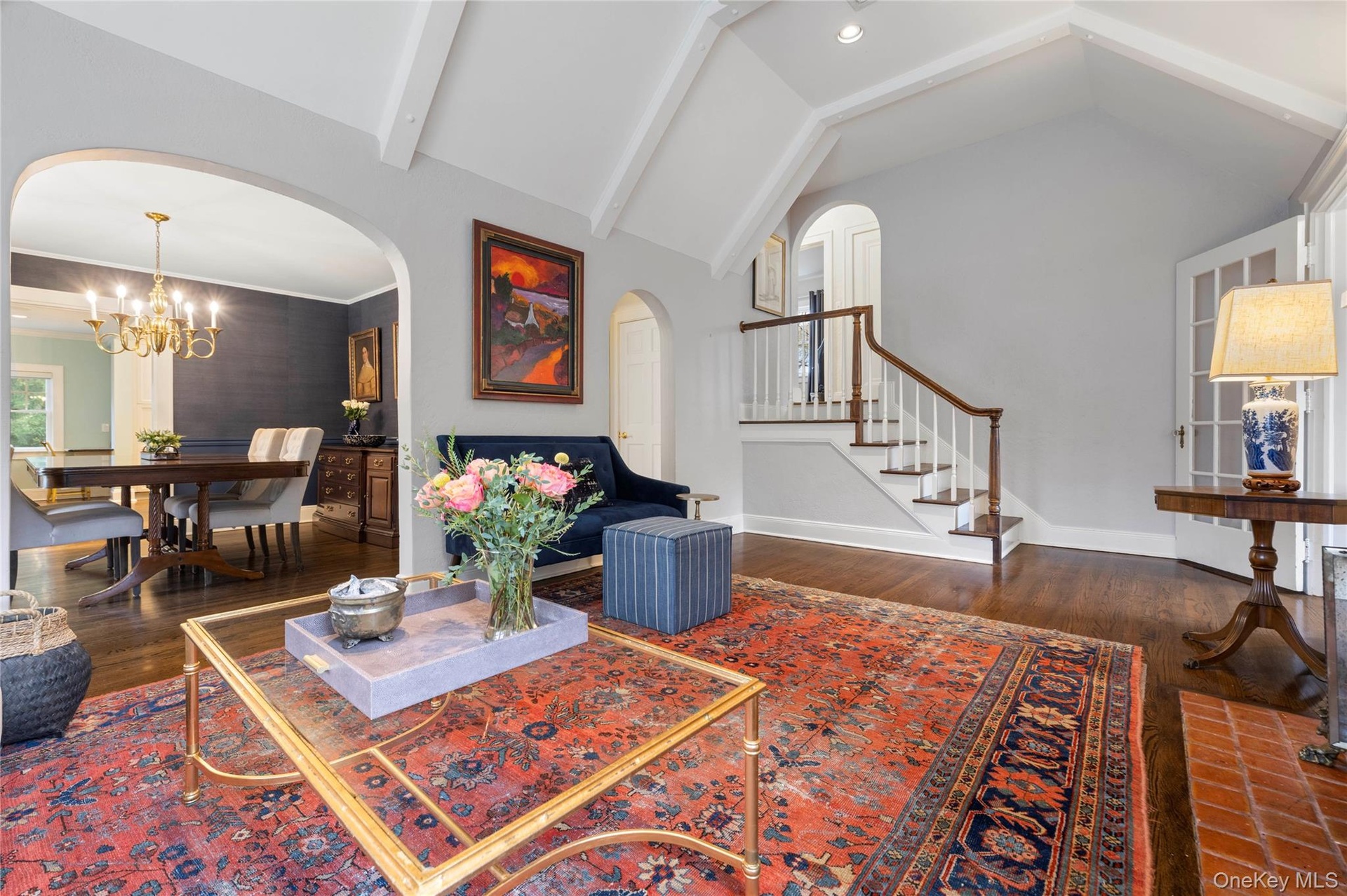 Nestled in the highly sought-after Cedar Ridge neighborhood of Irvington, this enchanting 1929 Tudor blends classic architectural charm with thoughtful modern updates. Just steps from scenic Halsey Pond and The Irvington Reservoir, and within walking distance to schools, downtown Irvington’s shops and restaurants, and the Metro-North station, this home perfectly combines elegance, convenience, and community. Inside, the home welcomes you with timeless character—vaulted ceilings, arched doorways, custom built-ins, and beautifully preserved period details. The open-concept kitchen and great room offer the ideal setting for modern living, featuring stainless steel appliances, granite countertops, and a spacious center island. French doors open to a large private deck, perfect for entertaining or enjoying a quiet morning coffee. Upstairs, the primary suite serves as a serene retreat with cathedral ceilings, a charming office nook, a walk-in closet, and a luxurious spa-inspired bathroom with a double vanity and soaking tub. Three additional bedrooms and two full hall baths complete the upper level, providing ample space for family or guests. The versatile lower level offers exceptional functionality, featuring a recreation area, a dedicated home gym or office space with walk-out access to the level backyard, and an impressive wine cellar. This home truly has it all—character, comfort, and a premier location. A commuter’s dream, Irvington offers a 45-minute train ride to Grand Central Station.