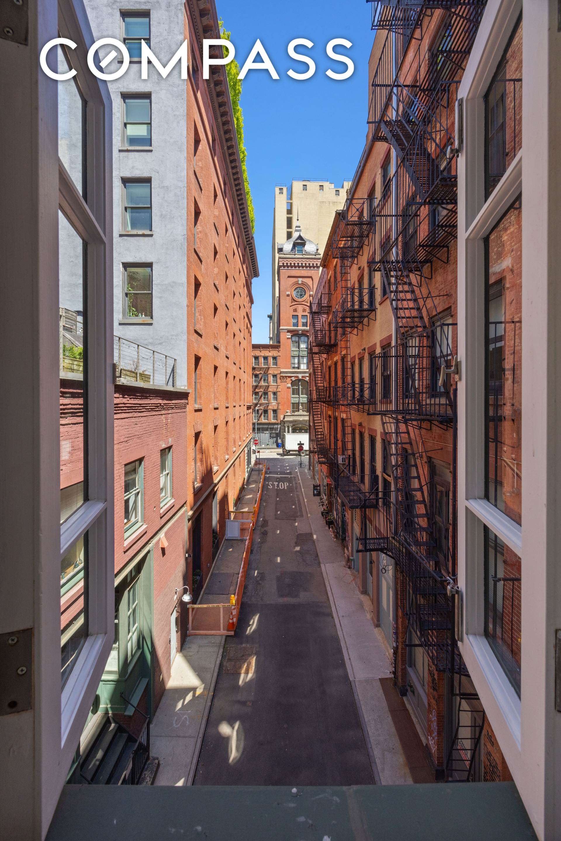 Rich in history, the property once housed the studio and private residence of a globally recognized fashion designer, and it remains a canvas for the next visionary owner. The entire structure benefits from brilliant natural light from all directions — south, west, east, and north — with captivating views over Duane Park, the surrounding landmarked facades, and the downtown skyline.
