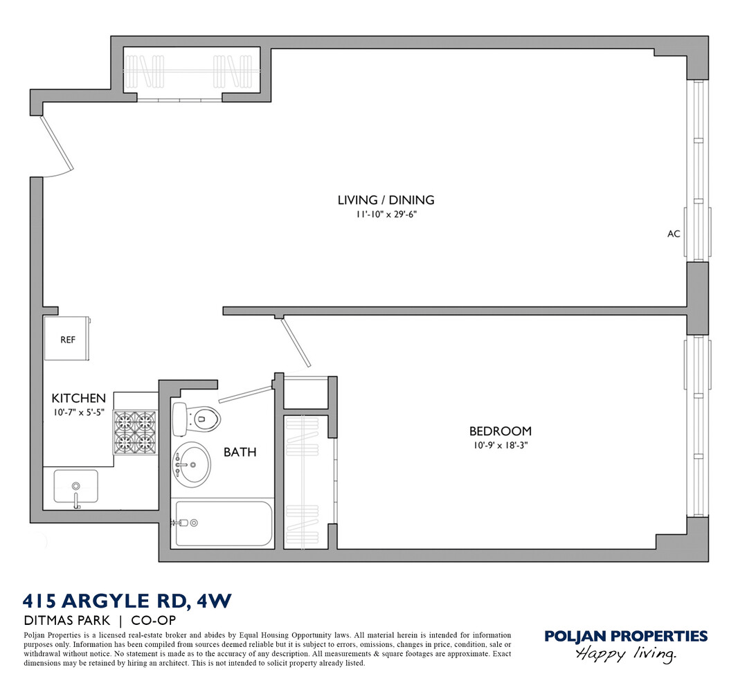 415 Argyle is arguably one of the best buildings in Ditmas Park, known for its modest maintenance fees given the location, recently renovated interiors and level of service. Mint, mid-century building impeccably maintained and cared for by the staff and lovingly looked after by its residents. Live-in Super, Porter, recently renovated Laundry Room, Backyard Garden, Voice & Video Intercom and Fios available. Parking and bike storage available (waitlist for both). Subletting allowed indefinitely, with board approval. Located on gorgeous, tree-lined Argyle Road, just off of Cortelyou. Cats welcome (sorry, no dogs).