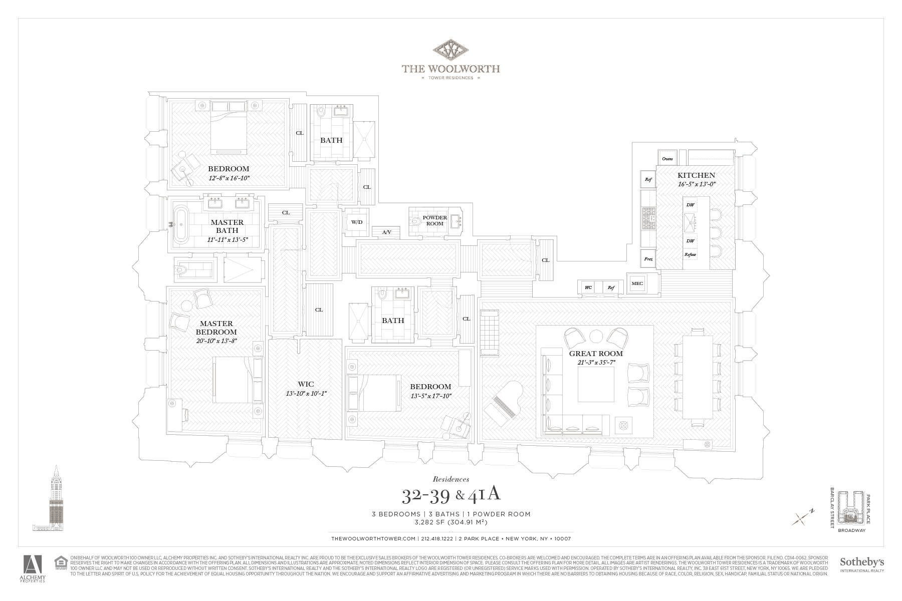 Soaring high above the city within the legendary Woolworth Building—the world’s first skyscraper and one of NYC’s most storied landmarks— Residence 35A offers approximately 3,300+/- square feet of luxurious, light-filled living. Designed by Dana Finesilver, this exceptional home combines timeless elegance with modern sophistication.