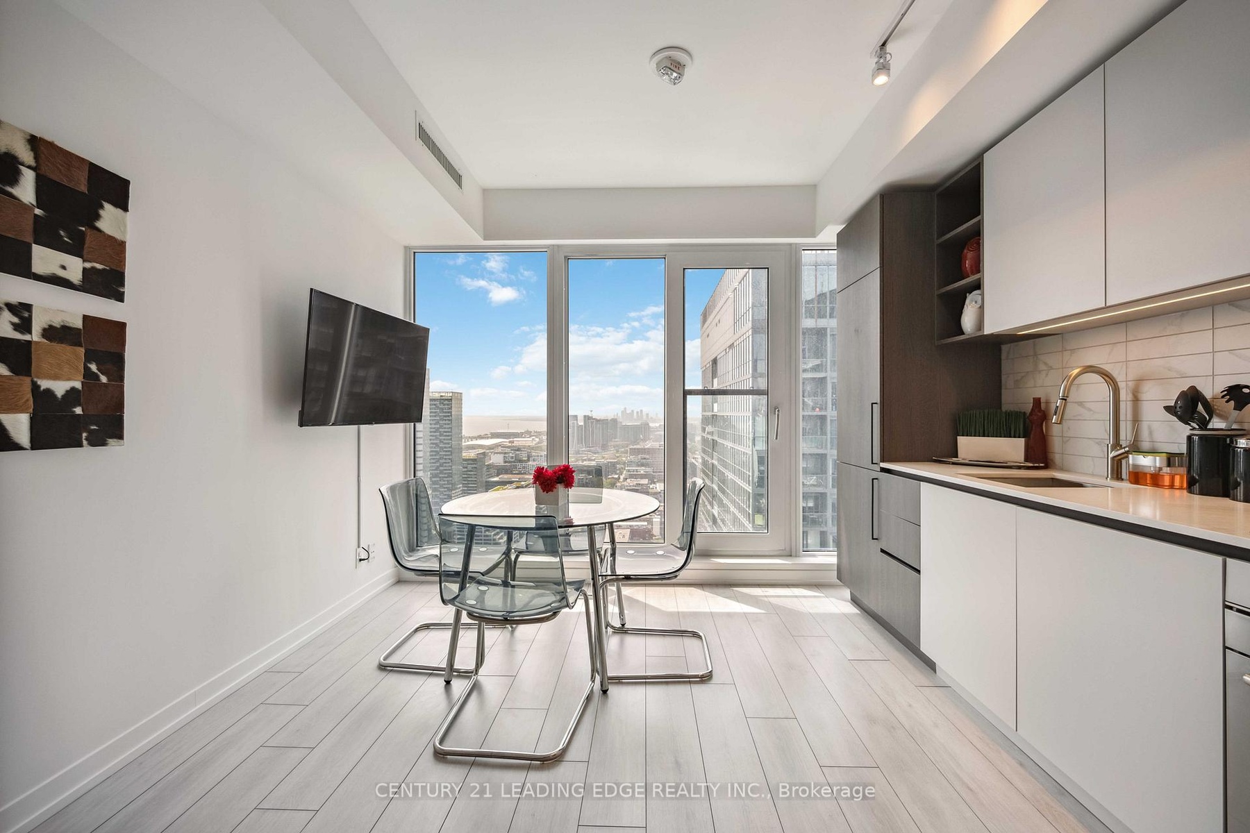 6 month lease available! Just bring your clothes! Stunning brand-new FULLY FURNISHED studio on the 46th floor in Toronto's vibrant Entertainment & Financial District. This turnkey residence offers everything you need - linens, dishes, full kitchen appliances, coffee maker & more - simply bring your clothing and move right in. Boasting floor-to-ceiling windows, you'll enjoy sweeping city and skyline views from high above, bathing the open-concept living area in natural light. 6 month+ rental available. Designed with luxury and convenience in mind, the suite features sleek, modern finishes throughout: integrated stainless-steel appliances, quartz countertops, designer flooring, and effortless style at every turn. Relax or entertain with ease, all in a residence where furnishings, kitchenware and linens have been thoughtfully included. Living at 55 Mercer means access to world-class amenities: the "Mercer Club" spans over three levels with a 24-hour attended lobby, state-of-the-art fitness centre (Peloton pods, HIIT zones, yoga studio), outdoor gym and basketball half-court, landscaped terraces with BBQs and fire pits, dog run, co-working lounge and boardroom facilities. With a Walk Score of 99 & Transit Score of 100, you are steps from the PATH underground network, Union Station, CN Tower, Rogers Centre, Lake Ontario's waterfront, world-class dining, theatres and the city's most desirable amenities. Ideal for the busy professional, or those seeking effortless city-living with every convenience at your doorstep, this sophisticated suite in a landmark new tower offers both premium lifestyle and unbeatable location. Don't miss your opportunity to live elevated - literally and figuratively. Tenant to provide rental application, credit report, references, etc. Tenant Responsible to pay for hydro. Tenant responsible to replace any damaged items during duration of lease.