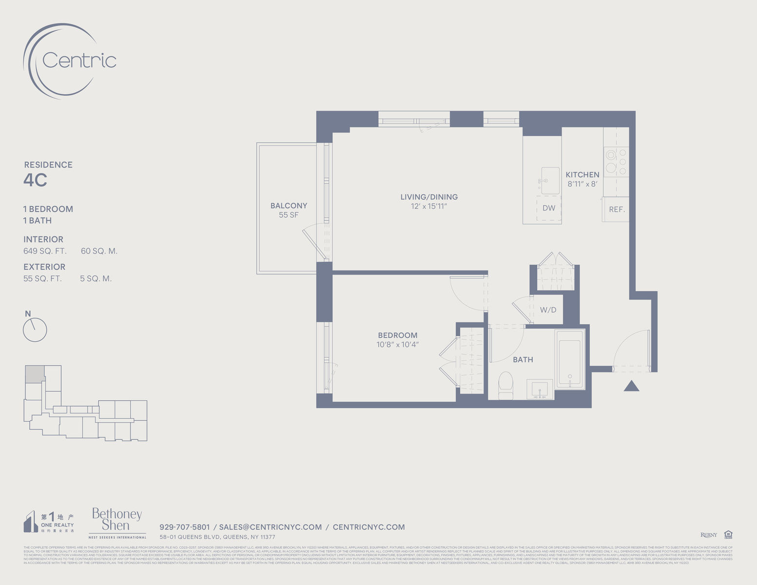 Welcome to the pinnacle of Woodside luxury at 58-01 Queens Boulevard. With private outdoor space and stunning amenities, this brand new 1-bedroom, 1-bathroom residence offers effortless modern living in an accessible residential zone close to the 7 subway line, the LIRR, and major thoroughfares. The home begins with an open-concept layout and floor-to-ceiling triple-pane tilt-and-turn windows that maximize natural light. A balcony off the living area is ideal for entertaining, potted plants, and outdoor lounging. Wide plank hardwood floors harmonize with a beautiful chef’s kitchen, which is adorned with stylish white marble countertops, a textured tile backsplash, a chrome faucet, a re-circulating range hood, and integrated Bosch appliances including a dishwasher and speed oven. The bedroom has ample closet space, and the bathroom features luxurious radiant heated floors, a custom floating vanity, an LED-lit vanity mirror, chic tilework, and a smart technology toilet fixture. 58-01 Queens Boulevard is a brand new full-service condominium with a striking grey brick and aluminum panel fac ̧ade. Amenities at 58-01 Queens Boulevard are spread across several floors and cater to a wide range of lifestyle needs. The cellar level has private storage, shared laundry facilities, a pet grooming station, and a podcast/music studio. The first level boasts an inviting lobby, a bicycle room, a parking garage, and a private gym. The second level offers a range of relaxation, entertainment, and workspace options, including a co-working center, a game room, a dining room, and an expansive terrace with a pickleball court, mini golf, a jungle gym, and an outdoor kitchen. Finishing the amenity spaces is a tranquil rooftop terrace with a pergola, dining and lounge furniture, lush planters, and grilling stations. 58-01 Queens Boulevard is moments from restaurants, bars, and shops along Roosevelt Avenue and is close to Lawrence Virgilio Playground, Doughboy Plaza, and Sunnyside Gardens Park. H Mart is a few blocks away, and Queens Boulevard and the I-278 allow for simple drives to LaGuardia Airport, JFK Airport, and Long Island.