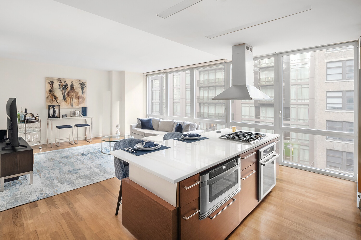 Extra-large, south-facing 855-square foot one-bedroom home in the full-service Twenty9th Park Madison Condominium, located perfectly in NoMad.