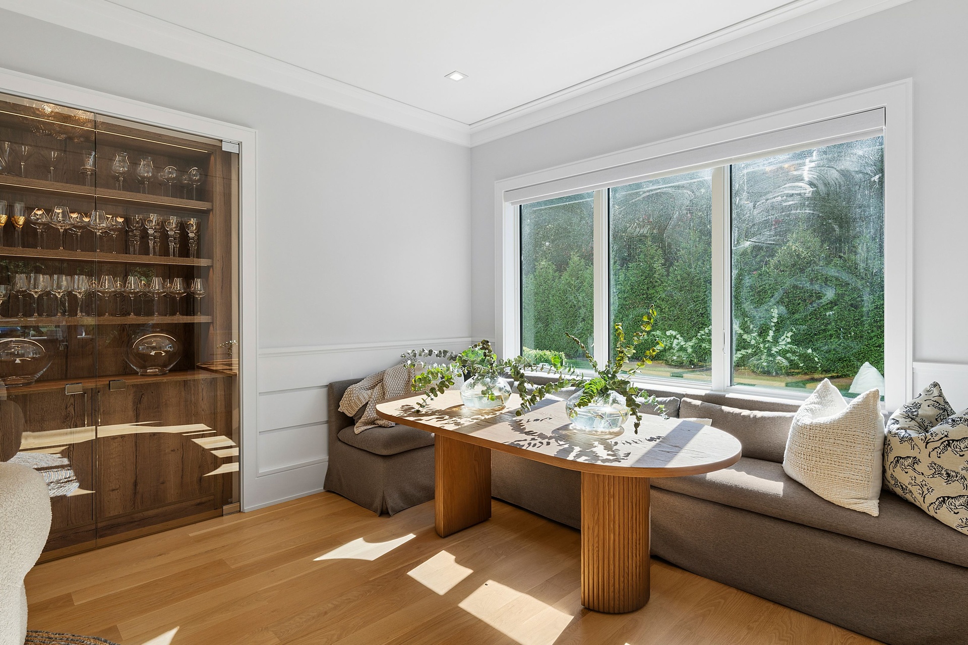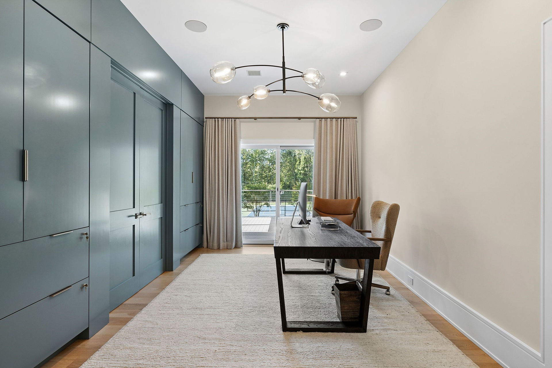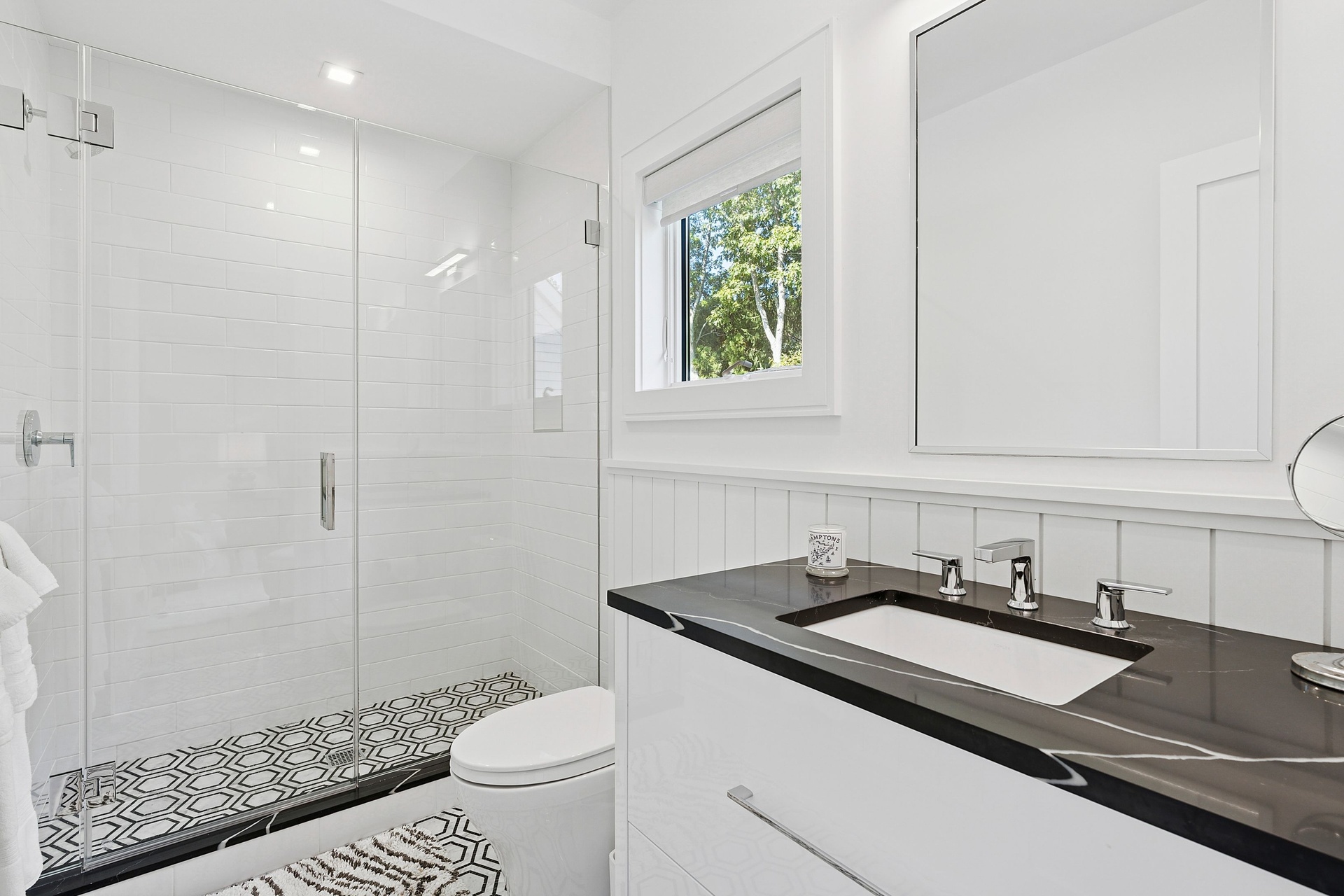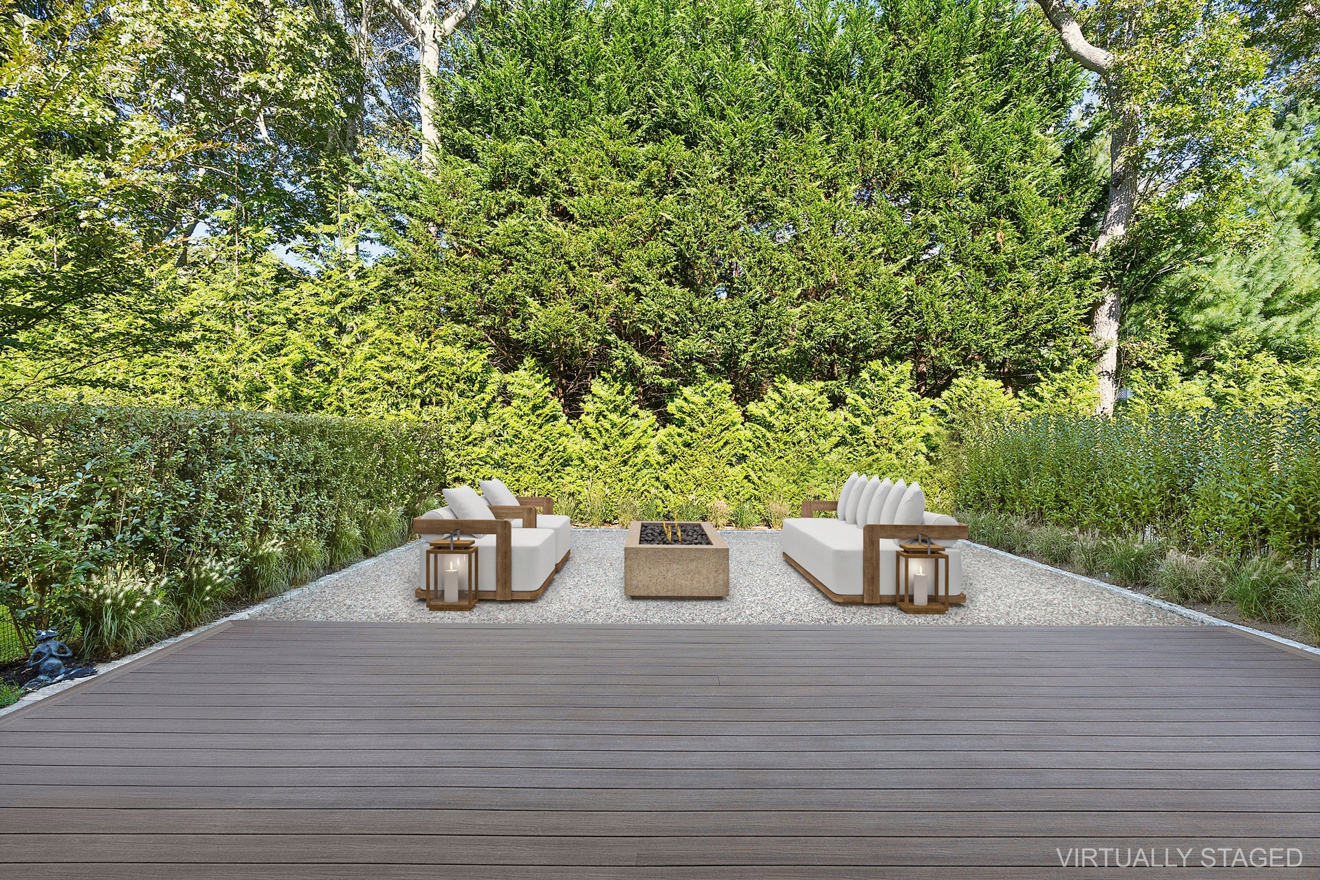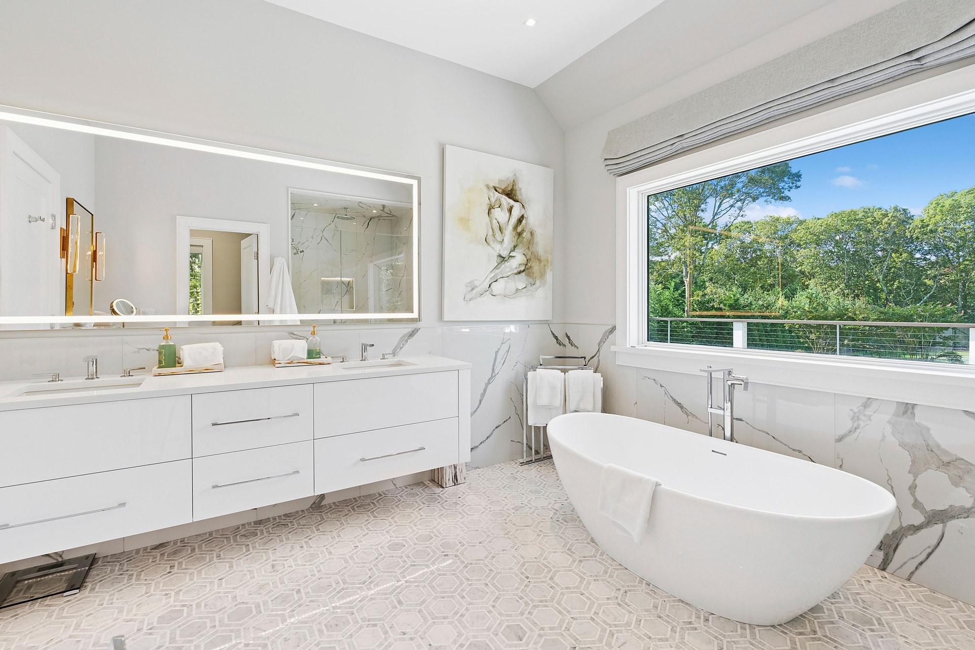 Nestled on a serene 1.3 acre flag lot, this gated estate is enveloped by mature privacy trees and lush, meticulously landscaped grounds creating a true private retreat. Spanning 7,000 square feet across three levels, the residence offers 7 bedrooms and 6.5 baths, thoughtfully designed with six-inch-wide white oak select hardwood flooring throughout. At the heart of the home, the gourmet kitchen showcases premium Sub-Zero and Wolf appliances, including an 8-burner stove, and a striking waterfall edge island with ample seating. Matching stone countertops and backsplash slabs add a touch of modern elegance, while an adjacent private dining area with a glass-front wine closet provides the perfect setting for entertaining. Just off the main living area, a state of the art fitness center opens through a full garage-style glass door into a private garden area, blending indoor and outdoor wellness experiences. Upstairs, the primary suite spans the entire rear of the home, offering tranquil backyard vistas from a wraparound balcony shared with the guest suite. The suite features a spacious sitting area or office alcove, a cozy fireplace, and an expansive custom closets. Three additional bedrooms and a fully equipped laundry room with generous storage and counter space complete this floor. The lower level is designed for leisure and entertainment, featuring a private sauna, theater/media room and two bedrooms with one full bathoom. The home features a state-of-the-art Japanese water filtration system servicing the entire house, delivering exceptionally pure, spa-quality water at every tap. Outdoors, the property transforms into a resort inspired sanctuary with a heated patio area, fire pit lounge, outdoor shower, pickleball and tennis court, and a built in spa integrated into the pool. Combining refined luxury with wellness focused living, this exceptional home offers a one of a kind retreat for relaxation, recreation, and rejuvenation. Only 5 minutes to water access to launch a paddle board or kayak on the peconic bay! **Rental includes use of an Escalade truck with Town of Southampton Beach Parking Pass!**