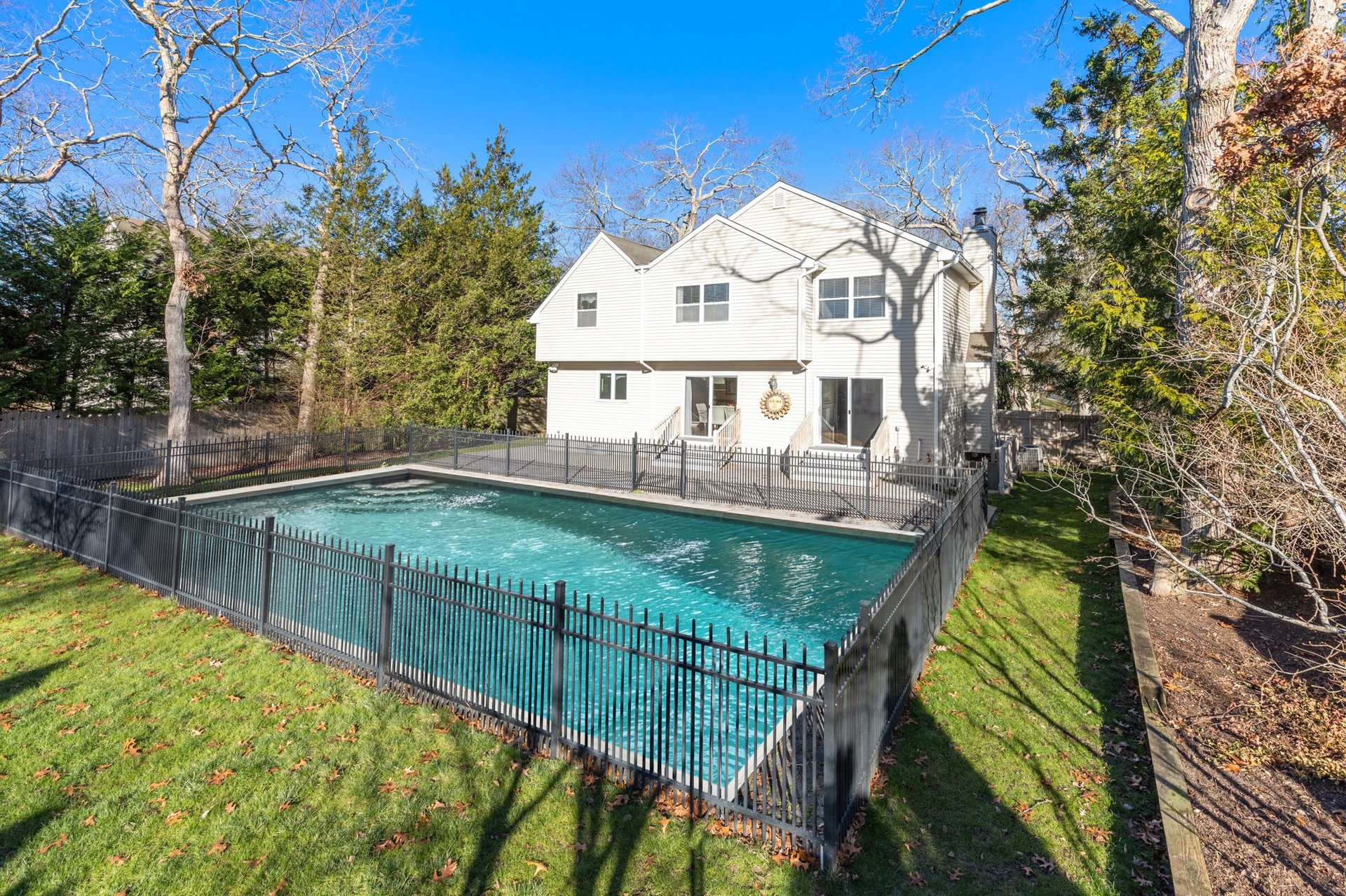 Enjoy summer in Remsenburg in this Post Modern home that features 4 bedrooms, 3 1/2 baths with 2 master suites. Newly furnished living room with fireplace, wonderful country kitchen with dining area. This home offers a child proof fence around the heated pool, patio with a bbq for relaxing and entertaining. Just a short drive to Rogers Beach, and Main St shopping .