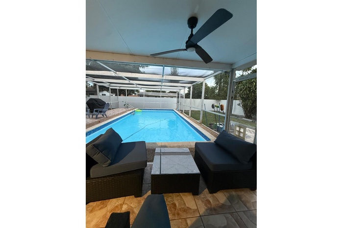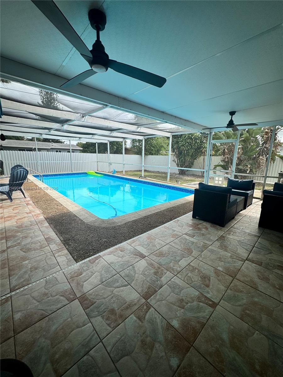 Welcome to this unique family pool home perfectly situated in one of the best areas of Miami Gardens. This property offers a one-car garage with conversion potential — ideal for an in-law suite or guest quarters. The main house features a functional and convenient layout with 3 bedrooms and 2 bathrooms, a spacious laundry area, and a screened backyard surrounded by lush fruit trees, creating a private and relaxing outdoor space perfect for entertaining or family gatherings. Property size larger than taxroll, 1281 SQF. Don’t miss this opportunity to own a home with endless potential in a highly desirable neighborhood — close to schools, shopping, and major highways. Newer Roof, A/C, Windows and Door, Flooring, Kitchen and many other upgrades