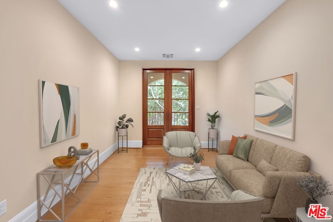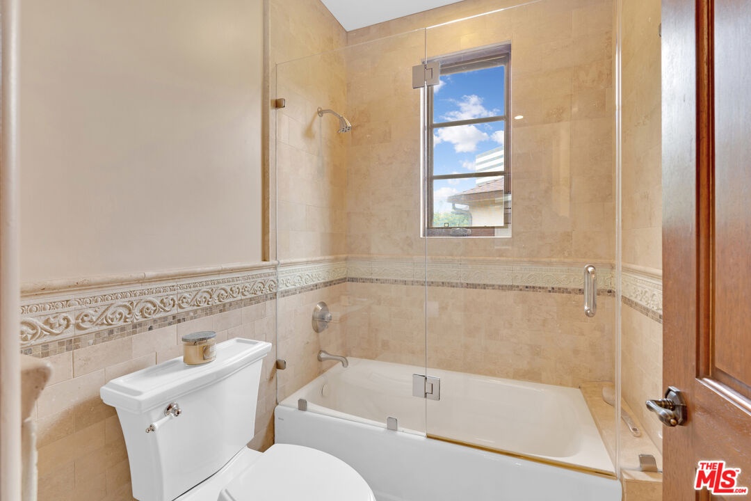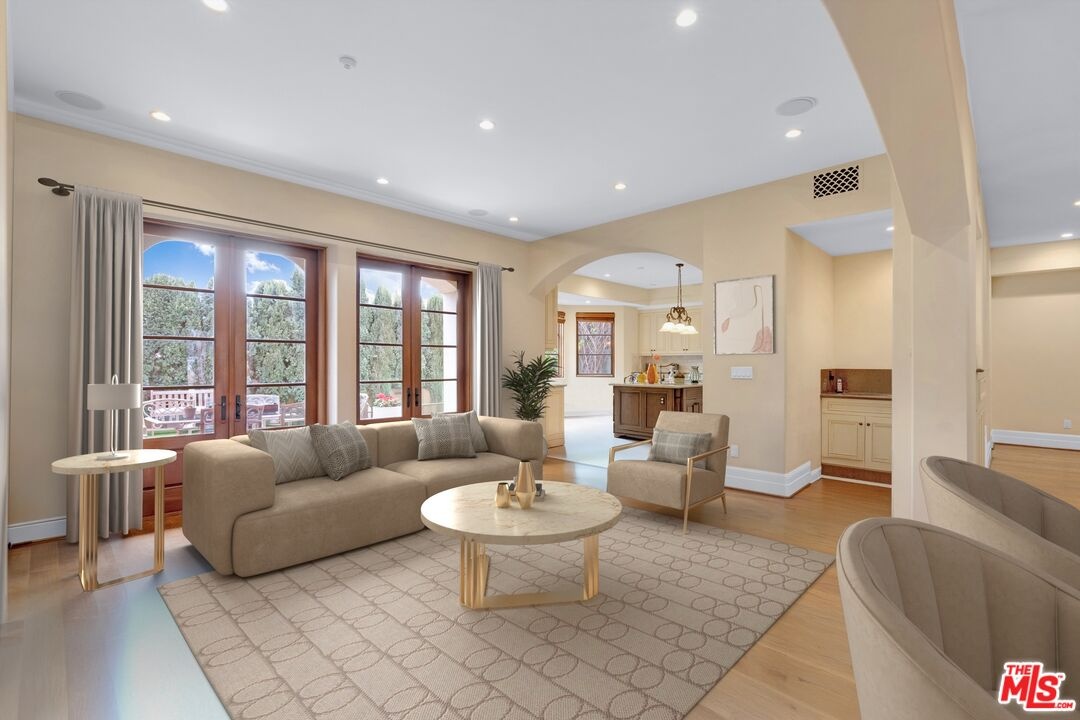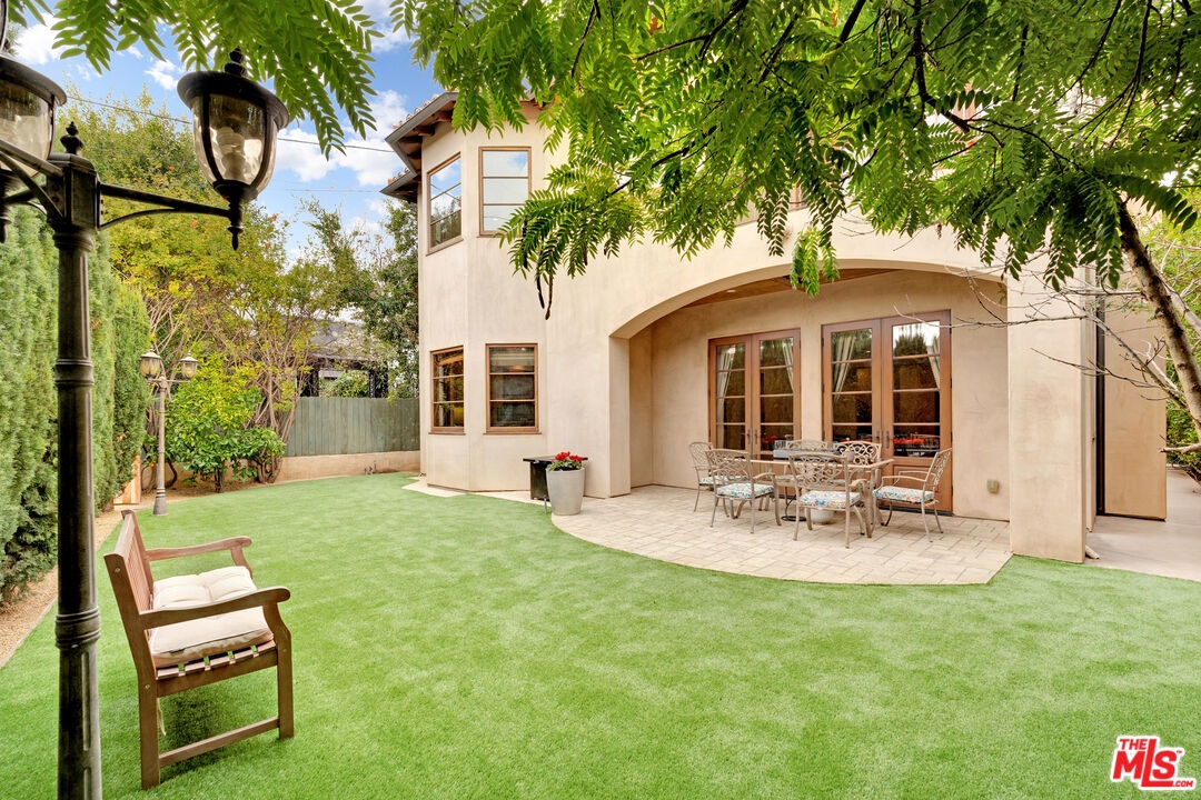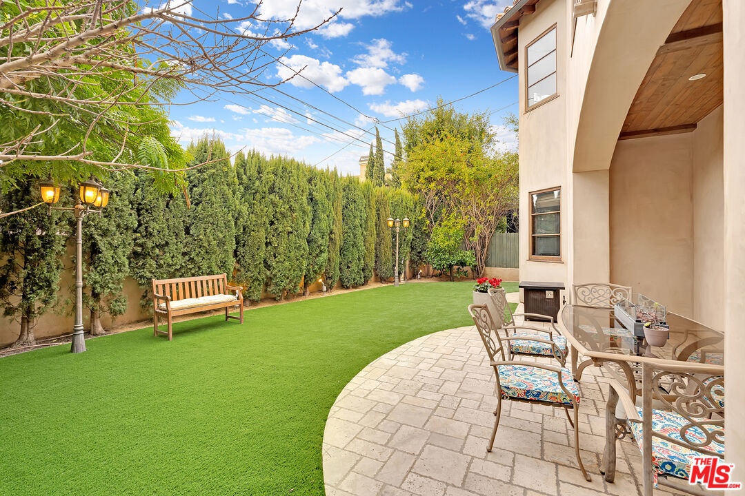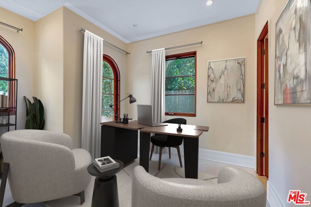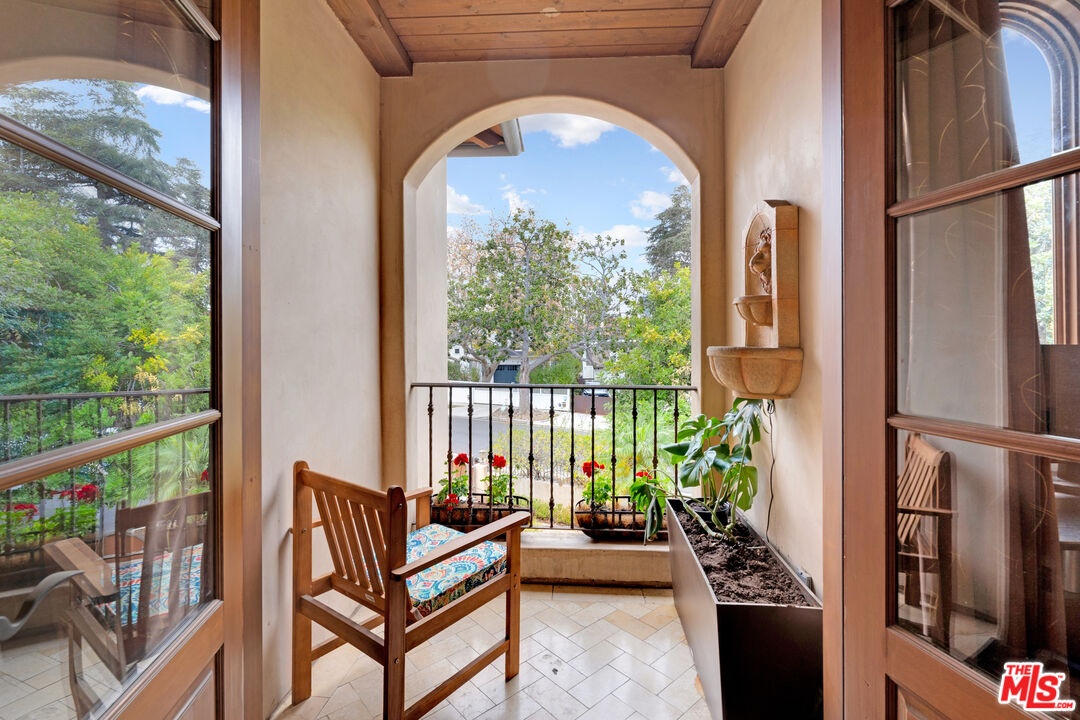 Nestled on a quiet, tree-lined street in the coveted Brentwood neighborhood, this beautiful four-bedroom, five-bathroom Tuscan-style home blends luxury with everyday comfort. With 3,933 square feet of living space, the property sits behind a wide secured gated driveway that offers both privacy and curb appeal. Curved arches, lush hedges, and timeless details create a warm and inviting first impression. Inside, high ceilings, travertine stone, and thoughtful finishes set the tone. The entry opens to a bright office overlooking the front garden. The spacious great room features a striking fireplace and flows effortlessly into the family room, the gourmet kitchen, and the backyard perfect for indoor-outdoor living. The kitchen includes a large stone island, a cozy breakfast nook, a Miele dishwasher, a Sub-Zero refrigerator, and a convenient butler's pantry that connects directly to the expansive dining room with its custom 12-person table and wet bar. Upstairs, a skylit hallway leads to a laundry room, a second den with a private balcony, and four upstairs bedroom suites. The primary suite is a true retreat, complete with a gas fireplace, a private balcony overlooking the backyard, a spa-like bathroom with dual sinks, a glass-enclosed shower, a soaking tub, and a generous walk-in closet.The backyard is ideal for entertaining, offering a dining terrace and mature cypress trees that enhance the home's seamless indoor-outdoor lifestyle. Parking for up to four cars is available between the two-car garage and gated driveway, which also features a Tesla charger. Additional security includes 24/7 neighborhood street cameras, a Ring door camera, and full property gating with secure entry. Just moments from top San Vicente restaurants and shopsincluding Katsuya, Baltaire, Great White, Coral Tree, Whole Foods, S Bar, and the Farmers Market this home captures the best of modern Brentwood living with easy access to Brentwood Village and Santa Monica. Available semi-furnished; photos are virtually staged.