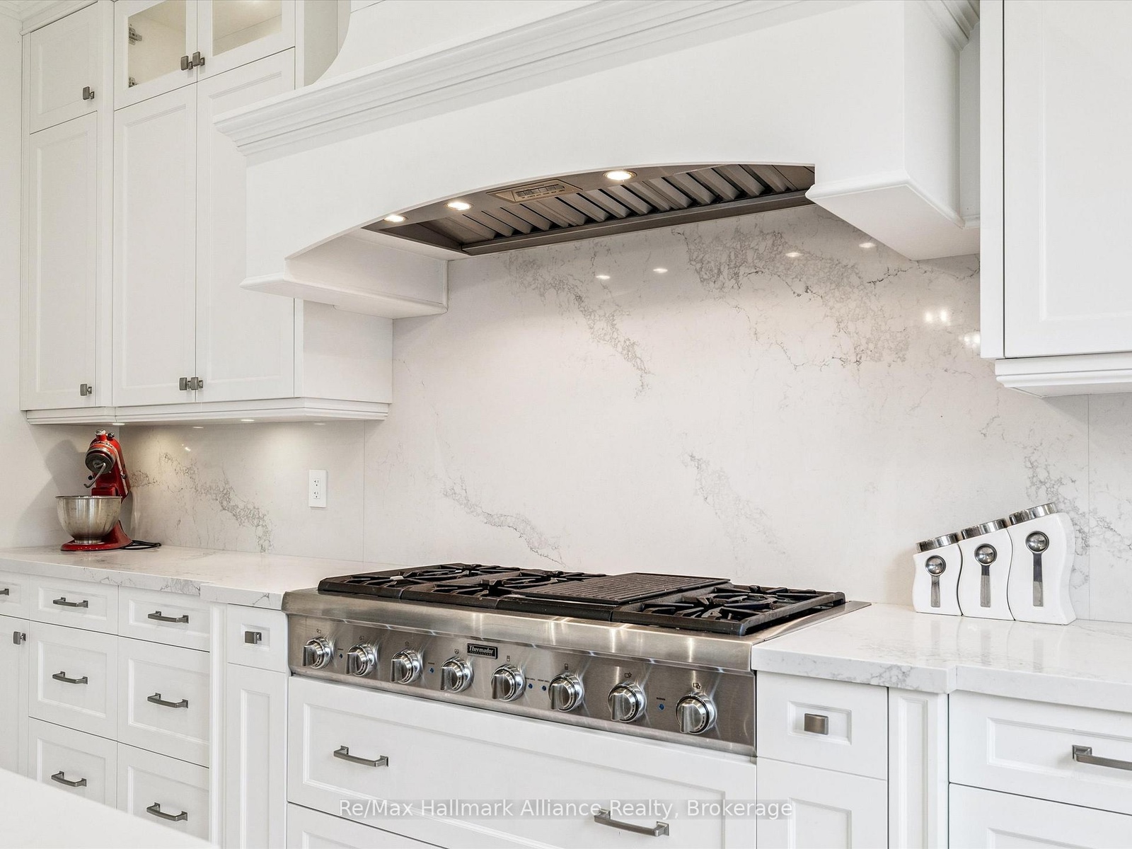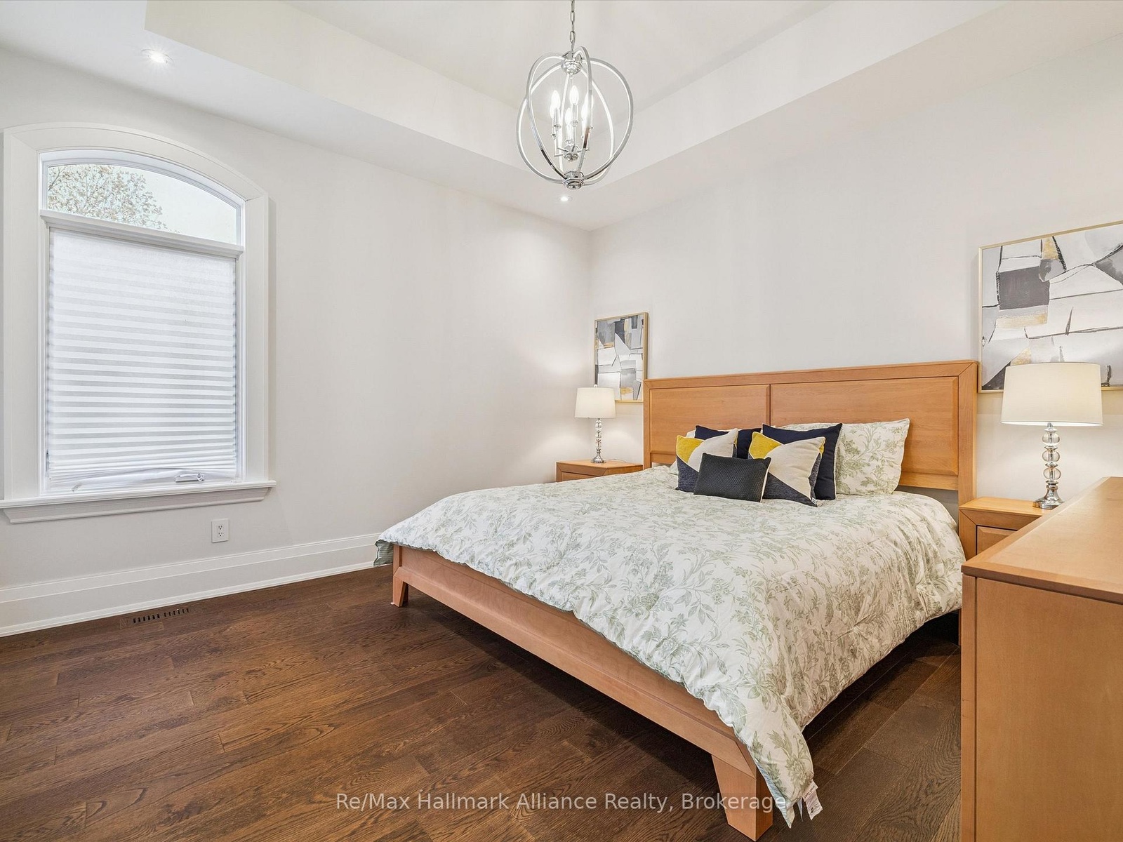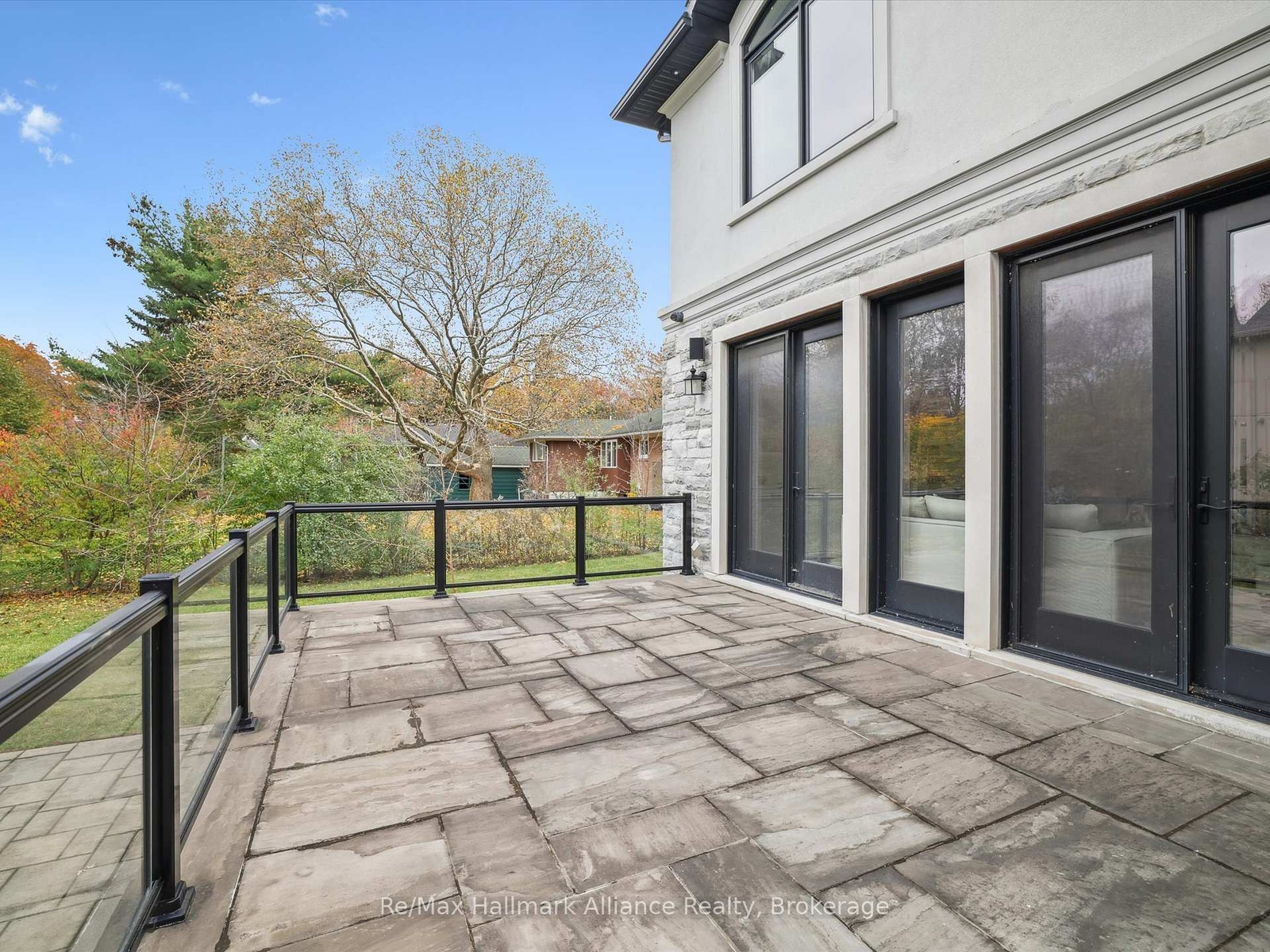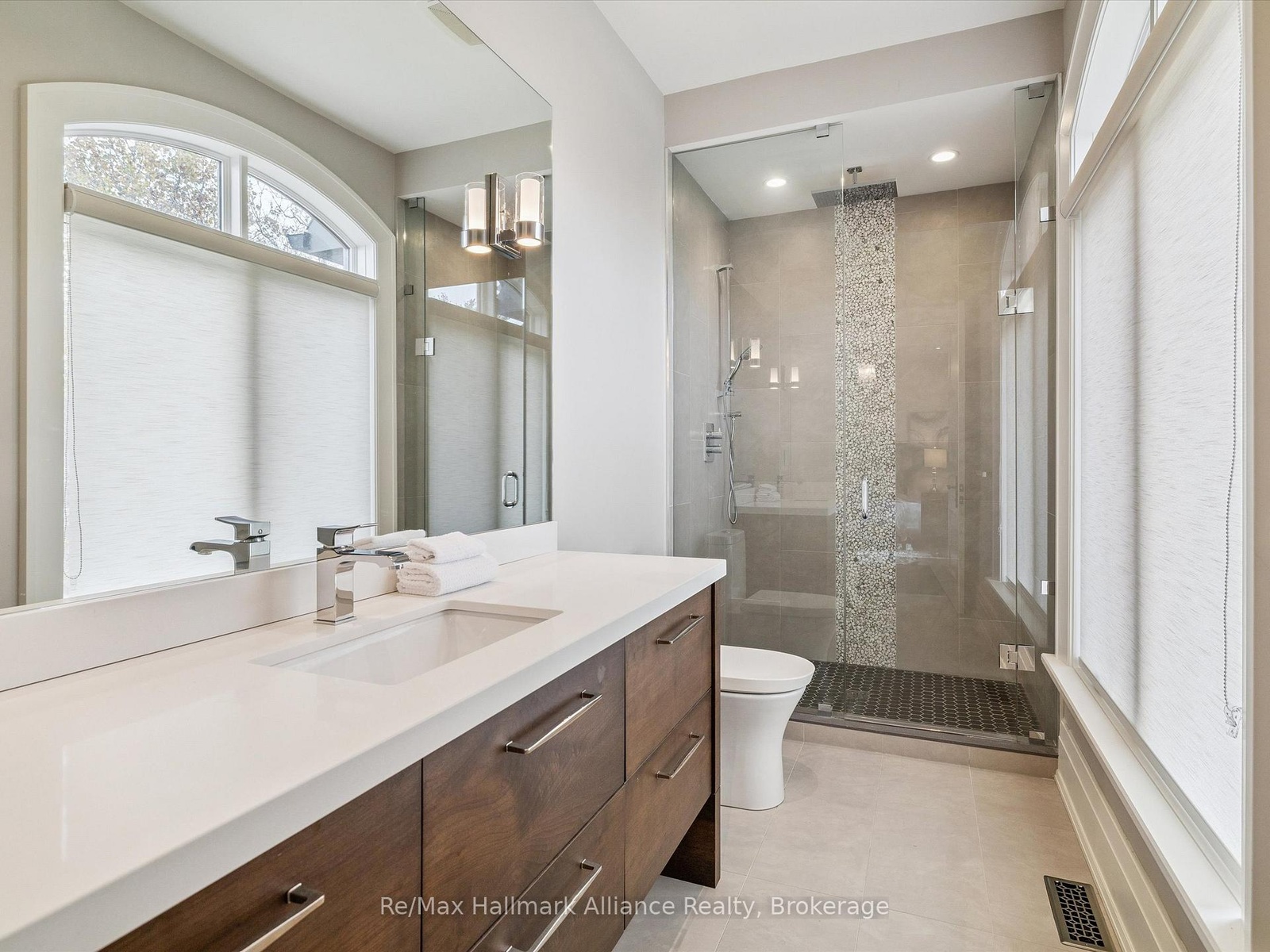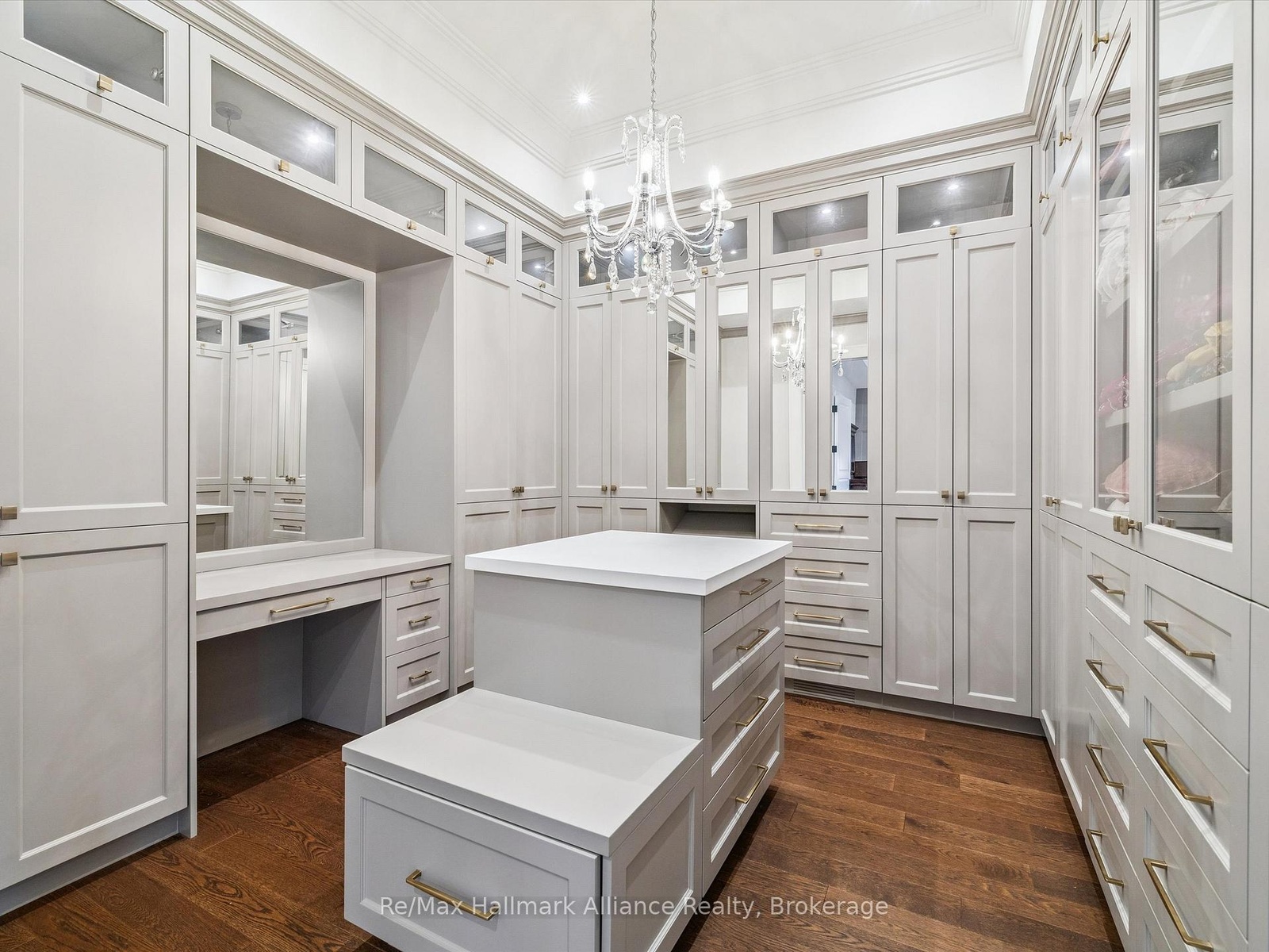 Welcome to this elegant custom-built french chateau ideally situated on a quiet, child-safe street with no sidewalk in the heart of South East Oakville. Thoughtfully designed and meticulously crafted by the original owner to the highest standards of quality, this home showcases refined architectural detail, timeless elegance, and a highly functional layout. Step inside to discover rare 10-foot ceilings on all three levels and a magnificent 20-foot two-storey great room with oversized floor-to-ceiling windows that fill the home with natural light. The interior exudes sophistication with extensive panelled wall detailing, custom crown mouldings, and varied ceiling designs in every principal room. A large custom skylight on the upper floor enhances the home's bright, airy ambiance.The main floor home office, beautifully appointed with custom walnut built-ins, provides a distinguished workspace. The gourmet eat-in kitchen is a chef's dream, featuring a large centre island, premium custom cabinetry, top-of-the-line appliances, and a walk-in pantry with a servery-all seamlessly open to the breakfast area and family room for effortless family living and entertaining.The upper level offers four generous bedrooms, each with its own private ensuite bathroom and 10-foot high tray ceilings, along with a convenient upper-level laundry room.The walk-out lower level extends the living space with a spacious recreation room, exercise room, guest bedroom, full bathroom, and bar area, along with abundant storage space.This residence also includes built-in speakers throughout, security cameras, an alarm system, and a natural stone exterior. The extra-long driveway accommodates 8+ cars, offering both practicality and curb appeal. A rare combination of luxury, comfort, and location, this exceptional home embodies the best of South East Oakville living - just 600 metres from top-rated schools, walk to the lake, parks, and other amenities, all in one of the area's most coveted settings.
