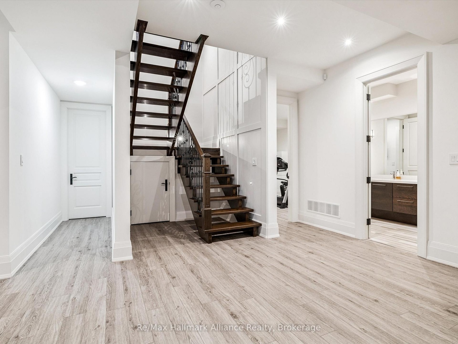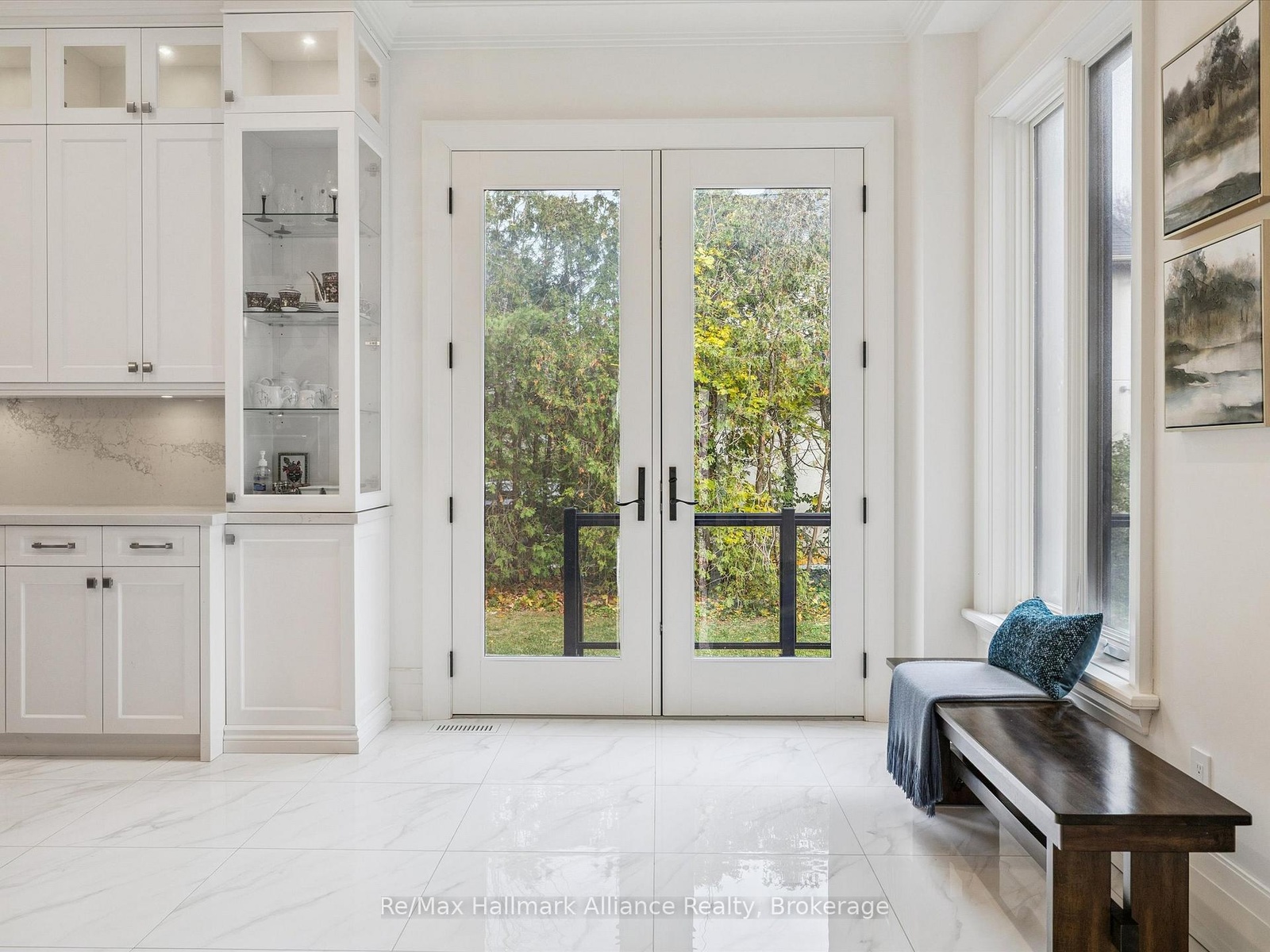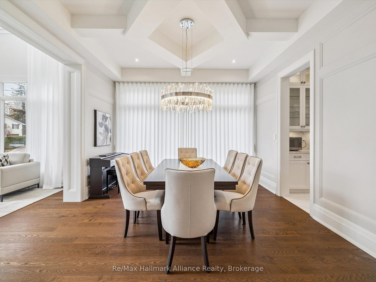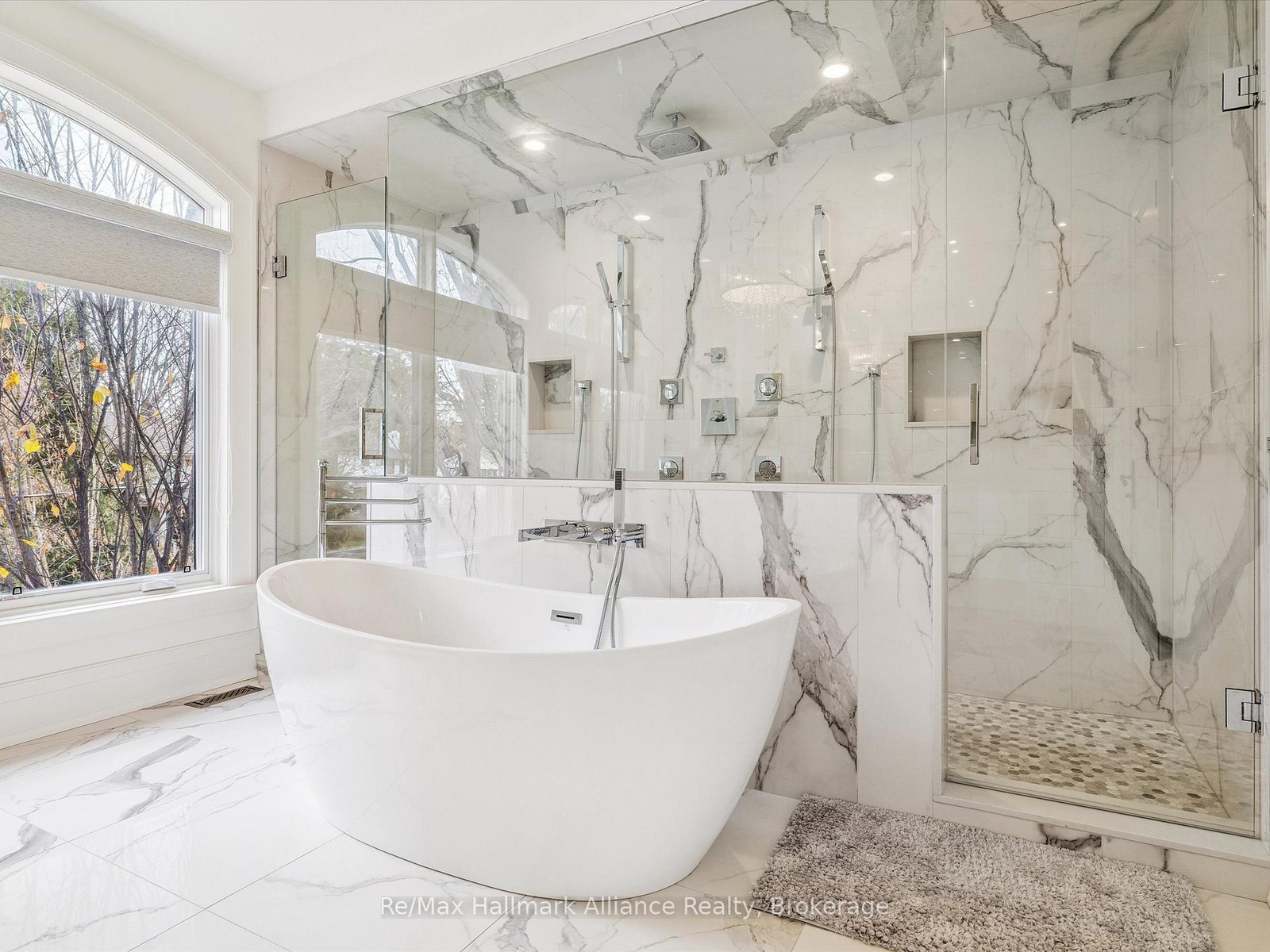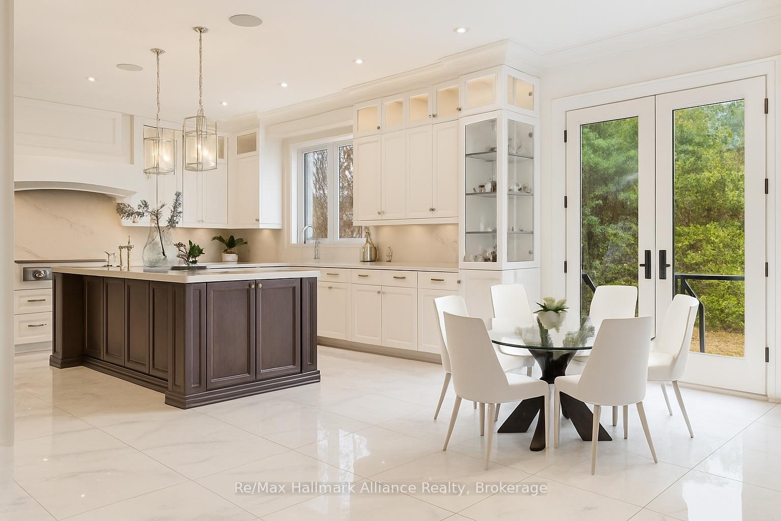 Welcome to this elegant custom-built french chateau ideally situated on a quiet, child-safe street with no sidewalk in the heart of South East Oakville. Thoughtfully designed and meticulously crafted by the original owner to the highest standards of quality, this home showcases refined architectural detail, timeless elegance, and a highly functional layout. Step inside to discover rare 10-foot ceilings on all three levels and a magnificent 20-foot two-storey great room with oversized floor-to-ceiling windows that fill the home with natural light. The interior exudes sophistication with extensive panelled wall detailing, custom crown mouldings, and varied ceiling designs in every principal room. A large custom skylight on the upper floor enhances the home's bright, airy ambiance.The main floor home office, beautifully appointed with custom walnut built-ins, provides a distinguished workspace. The gourmet eat-in kitchen is a chef's dream, featuring a large centre island, premium custom cabinetry, top-of-the-line appliances, and a walk-in pantry with a servery-all seamlessly open to the breakfast area and family room for effortless family living and entertaining.The upper level offers four generous bedrooms, each with its own private ensuite bathroom and 10-foot high tray ceilings, along with a convenient upper-level laundry room.The walk-out lower level extends the living space with a spacious recreation room, exercise room, guest bedroom, full bathroom, and bar area, along with abundant storage space.This residence also includes built-in speakers throughout, security cameras, an alarm system, and a natural stone exterior. The extra-long driveway accommodates 8+ cars, offering both practicality and curb appeal. A rare combination of luxury, comfort, and location, this exceptional home embodies the best of South East Oakville living - just 600 metres from top-rated schools, walk to the lake, parks, and other amenities, all in one of the area's most coveted settings.