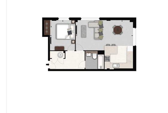 Stylish Warehouse-Style One-Bedroom Apartment in the Exclusive Riverside Development