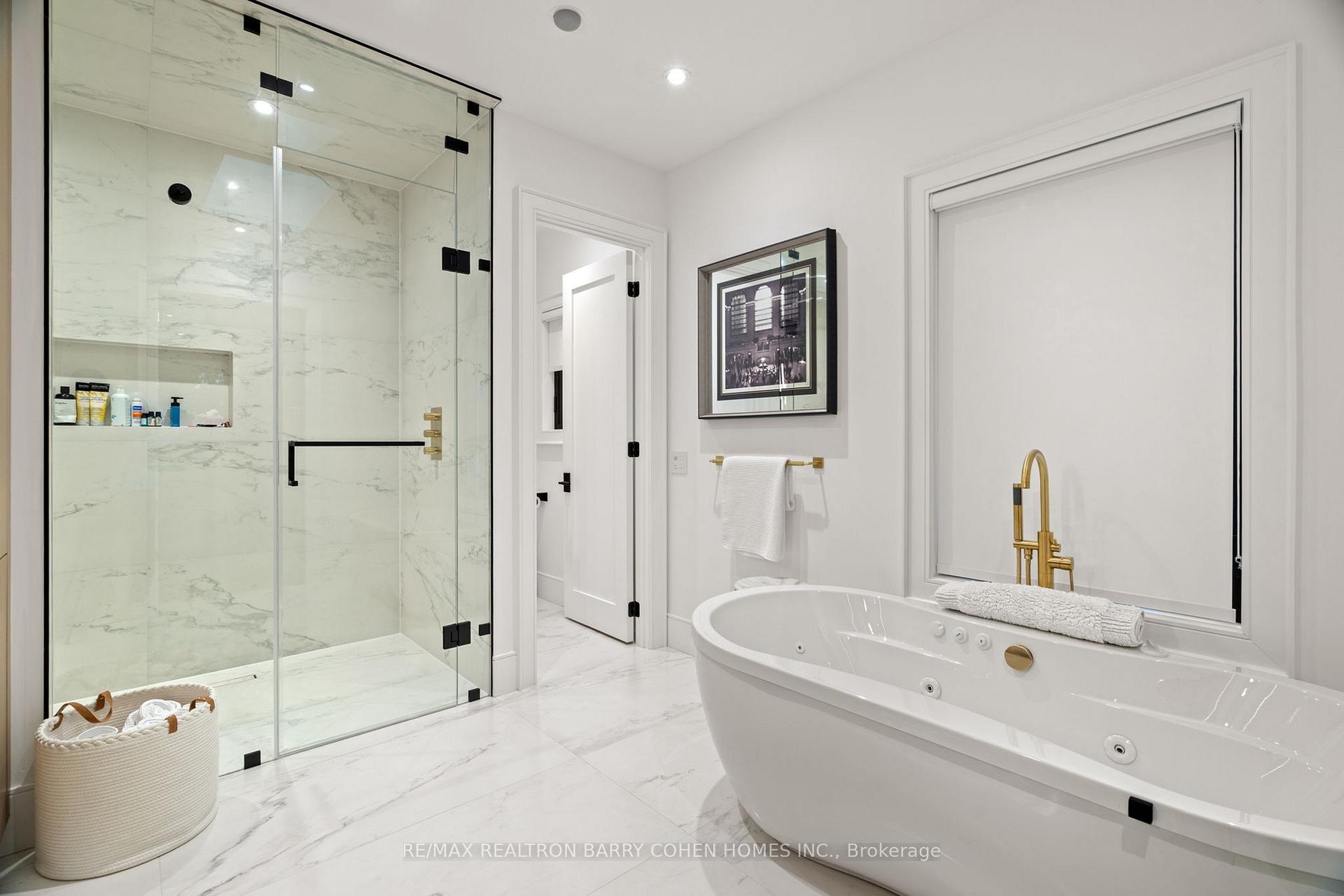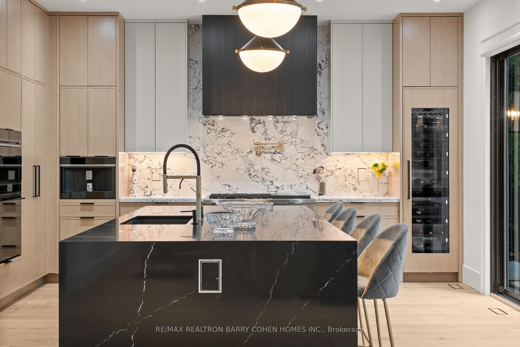 Newly built modern residence in the heart of South Leaside offering nearly 6,500 sq.ft. of living space! Exceptional designer-curated finishes and smart home technology throughout. Designed for the modern family and built to impress, this magazine-worthy residence perfectly blends luxury, functionality, and versatility. Oversized principal rooms, two private home offices, and a full legal in-law suite with income potential make it ideal for multigenerational living or a flexible live-work lifestyle.Showcasing engineered white oak floors, soaring ceilings, and expansive windows with motorized blinds, every detail reflects thoughtful design and quality craftsmanship. The custom kitchen is a true centerpiece - featuring a panelled fridge, trash compactor, waterfall island with hidden storage, and full-height cabinetry - flowing seamlessly into the family room with a marble gas fireplace and walkout to the backyard. Step lighting, integrated speakers, and sleek modern finishes complete the main level's sophisticated aesthetic.Upstairs, four oversized bedrooms include a magazine-worthy primary suite with a slatted wood feature wall access to His & Hers WICs, cove-lit ceiling, fireplace in stone surround, fully equipped bar, walkout to a private balcony (hot tub-ready), and a spa-inspired ensuite with steam shower, freestanding tub, heated floors, and double vanities. Secondary bedrooms are equally impressive, and a dedicated laundry room with dual washer/dryers enhances everyday ease. Upstairs office may be converted to a 5th bedroom.The lower level extends the living experience with a gym, sauna, recreation lounge, and wet bar equipped with a dishwasher and bar fridge - plus a soundproofed legal in-law suite with its own entrance, kitchen, 3-piece bath & laundry.Located in the coveted Bessborough/Rolph school district, this home delivers a rare combination of sophistication, functionality, and future income potential in one of Toronto's most sought-after neighbourhoods.