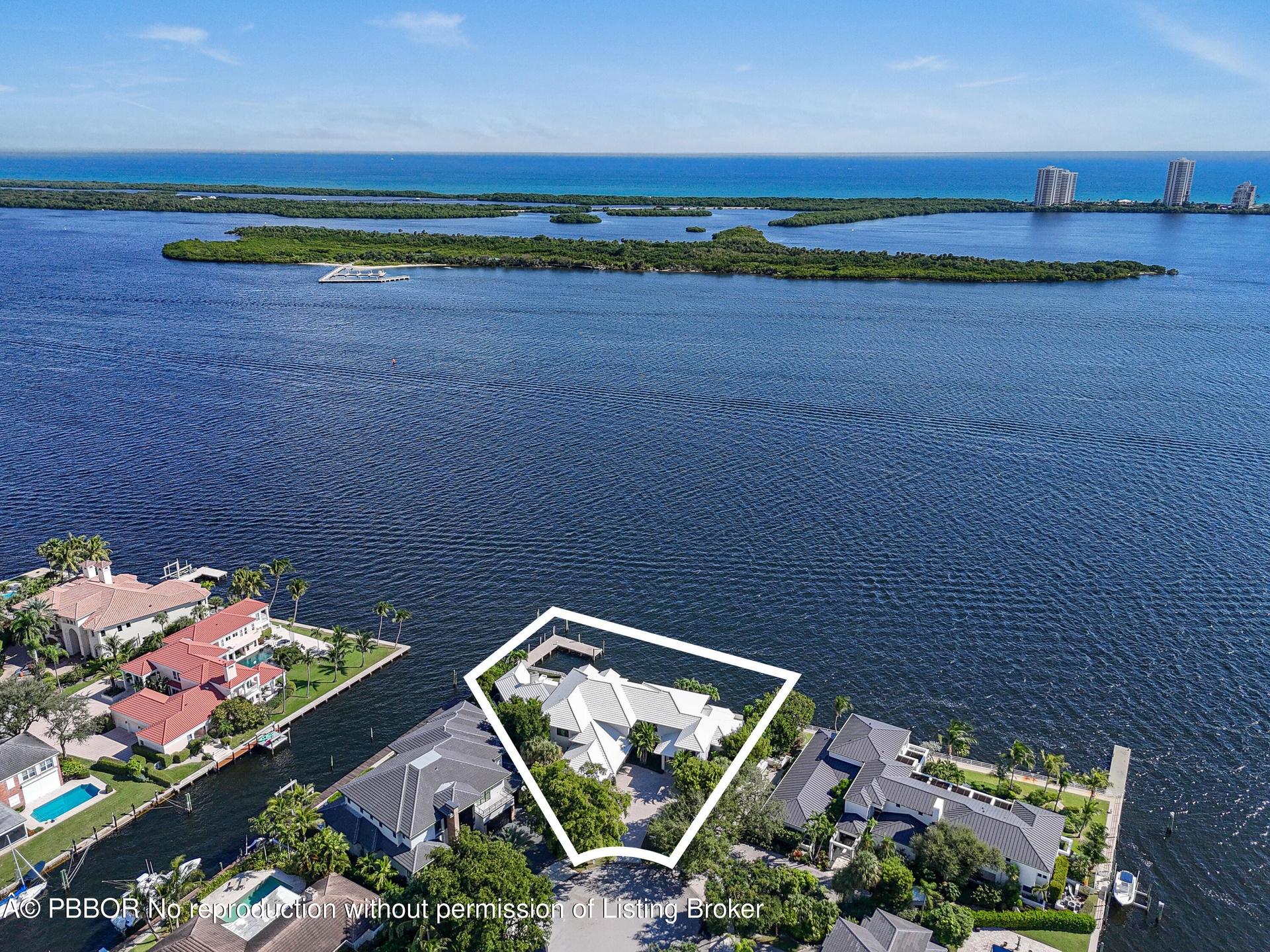Experience the pinnacle of waterfront luxury with this exceptional estate, offering sweeping 180° panoramic views of MacArthur State Park, Munyon Island, and Singer Island. Perfectly positioned on a highly coveted .41-acre point lot, this residence showcases 219 feet of premier water frontage and captivating, wide-water vistas that span Lake Worth and the Intracoastal Waterway. Inside, the home's five bedrooms, six full baths and two half baths are designed around a bright, open-concept layout that captures stunning water views from nearly every room. The gourmet kitchen features dual islands, top-of-the-line appliances, and a seamless flow that's perfect for both entertaining and everyday living. Two primary suites offer serene retreats, each thoughtfully designed with timeless elegance, modern comfort, and breathtaking water panoramas. Each suite has an adjacent room that is suitable as an office, library or gym. Step outside to a very private resort-style oasis, complete with an infinity-edge pool and expansive covered terrace designed for alfresco dining and entertainingall set against the tranquil backdrop of the Intracoastal. A private concrete dock and bulkhead accommodates yachts up to 90 feet and provides quick, direct access to the Palm Beach Inletideal for the avid boater. Nestled within the prestigious Village of North Palm Beach, this property embodies the ultimate South Florida lifestylewhere world-class boating, golf, and dining converge with coastal charm. A true masterpiece of waterfront design, this estate offers an extraordinary opportunity to own a piece of direct Intracoastal paradisewhere dramatic sunrises, golden sunsets, and passing yachts paint an ever-changing waterfront panorama.