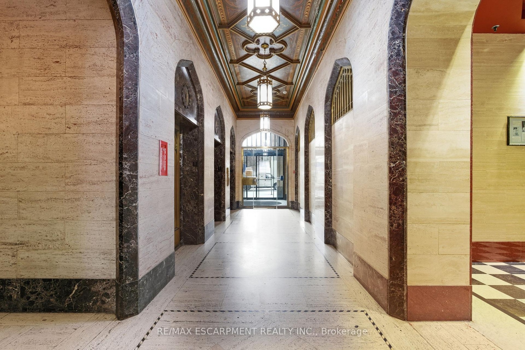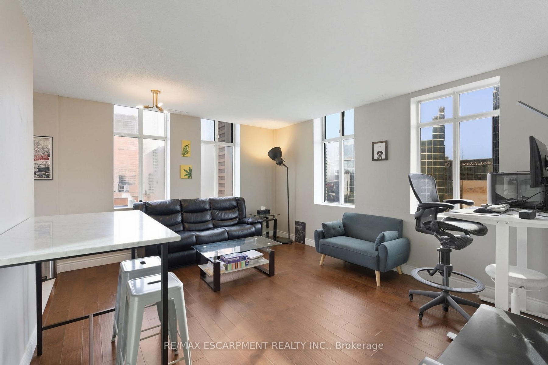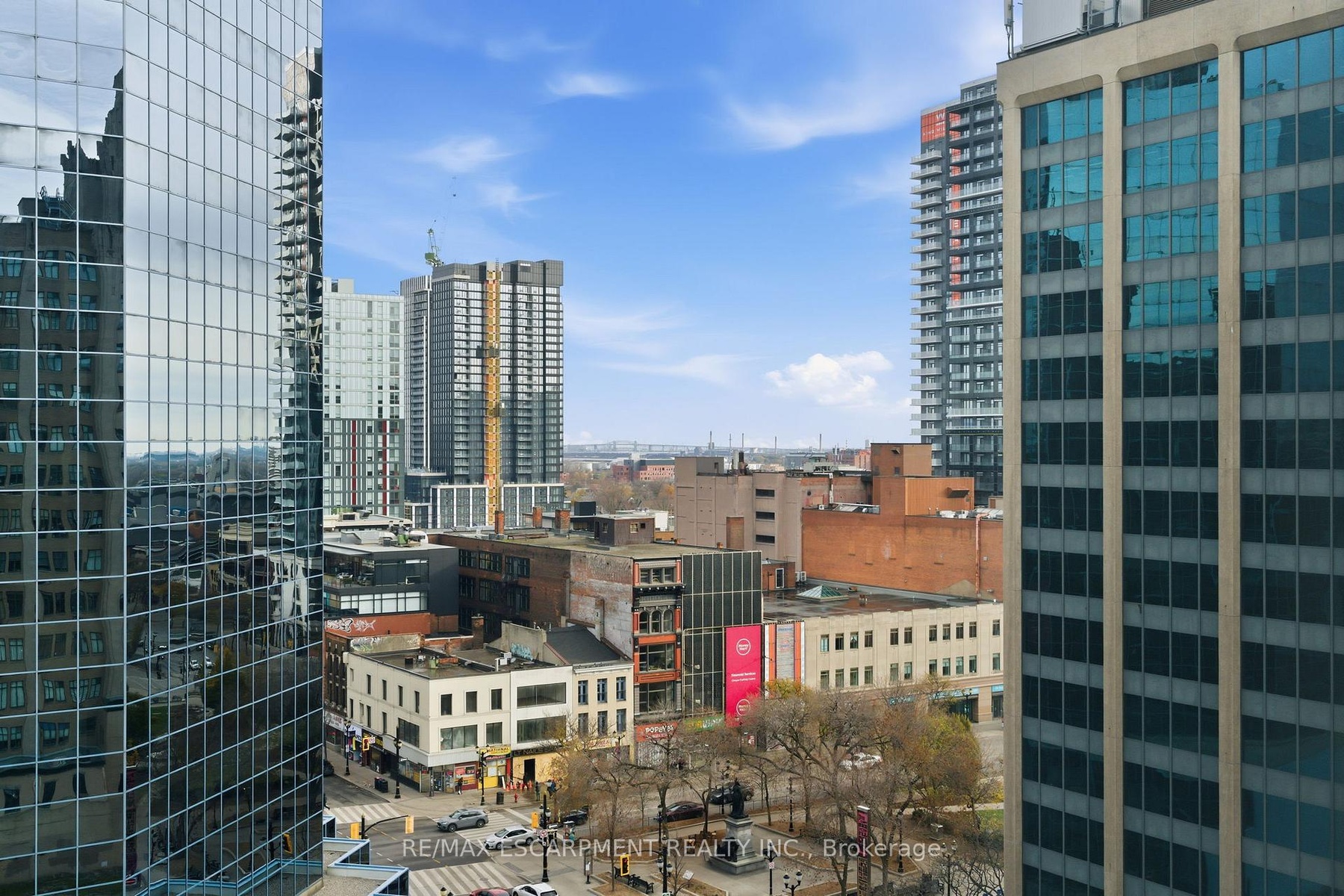 Live in a part of Hamilton history! The beautiful Pigott Building is located right in the city's core. This furnished corner unit on the 10th floor has a breathtaking view of downtown Hamilton. The renovated kitchen features bright white cabinets with soft close feature, beautiful quartz countertops, and a ceramic/glass backsplash. The recently renovated bathroom has upgraded fixtures. Laundry is also conveniently located in the unit. One private parking space and a locker are included. The building offers a gym, party room, and more. Enjoy being walking distance to everything downtown, such as James Street art district, bus terminal, Go Station, First Ontario Centre, Jackson Square, and so much more! Welcome home! RSA.