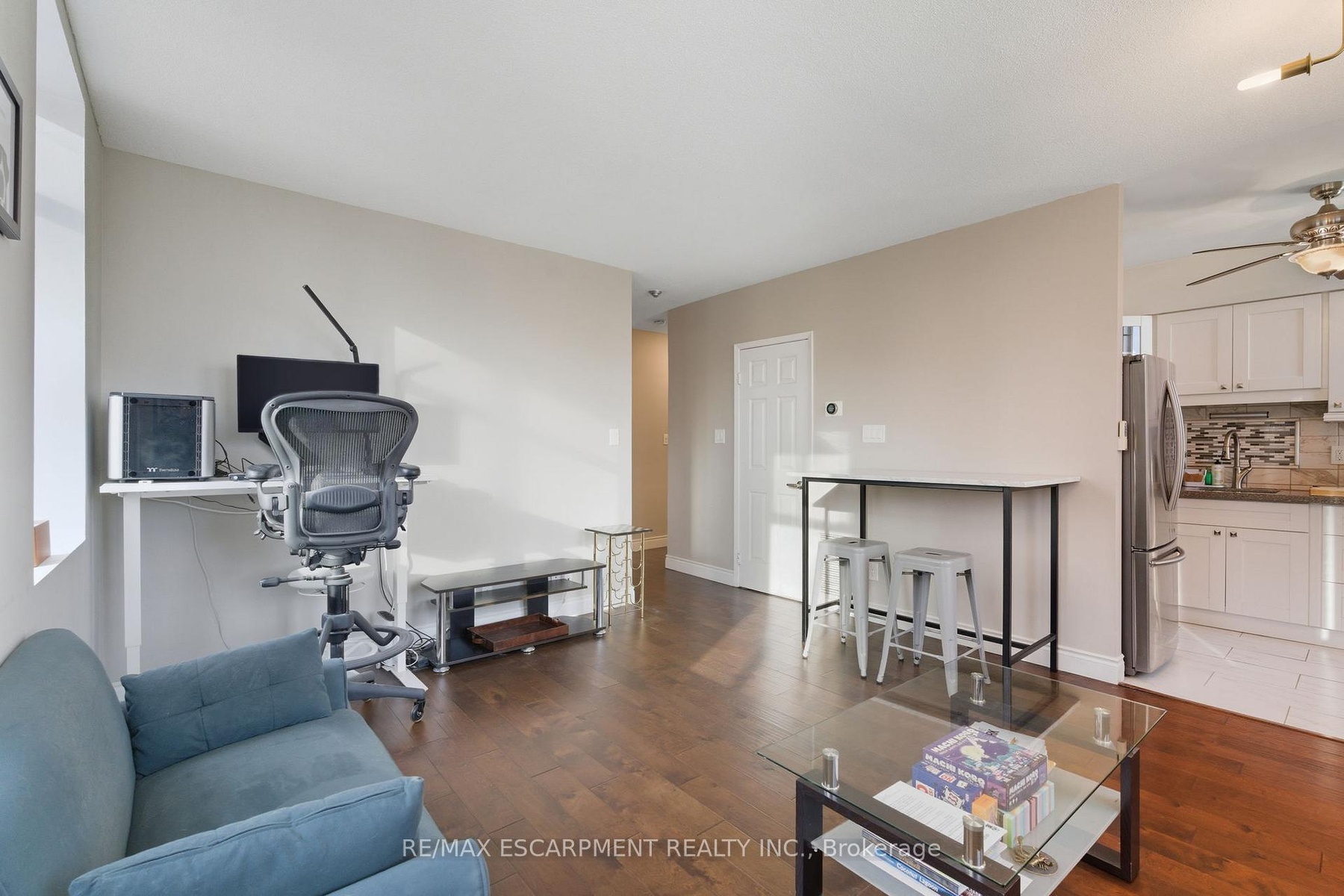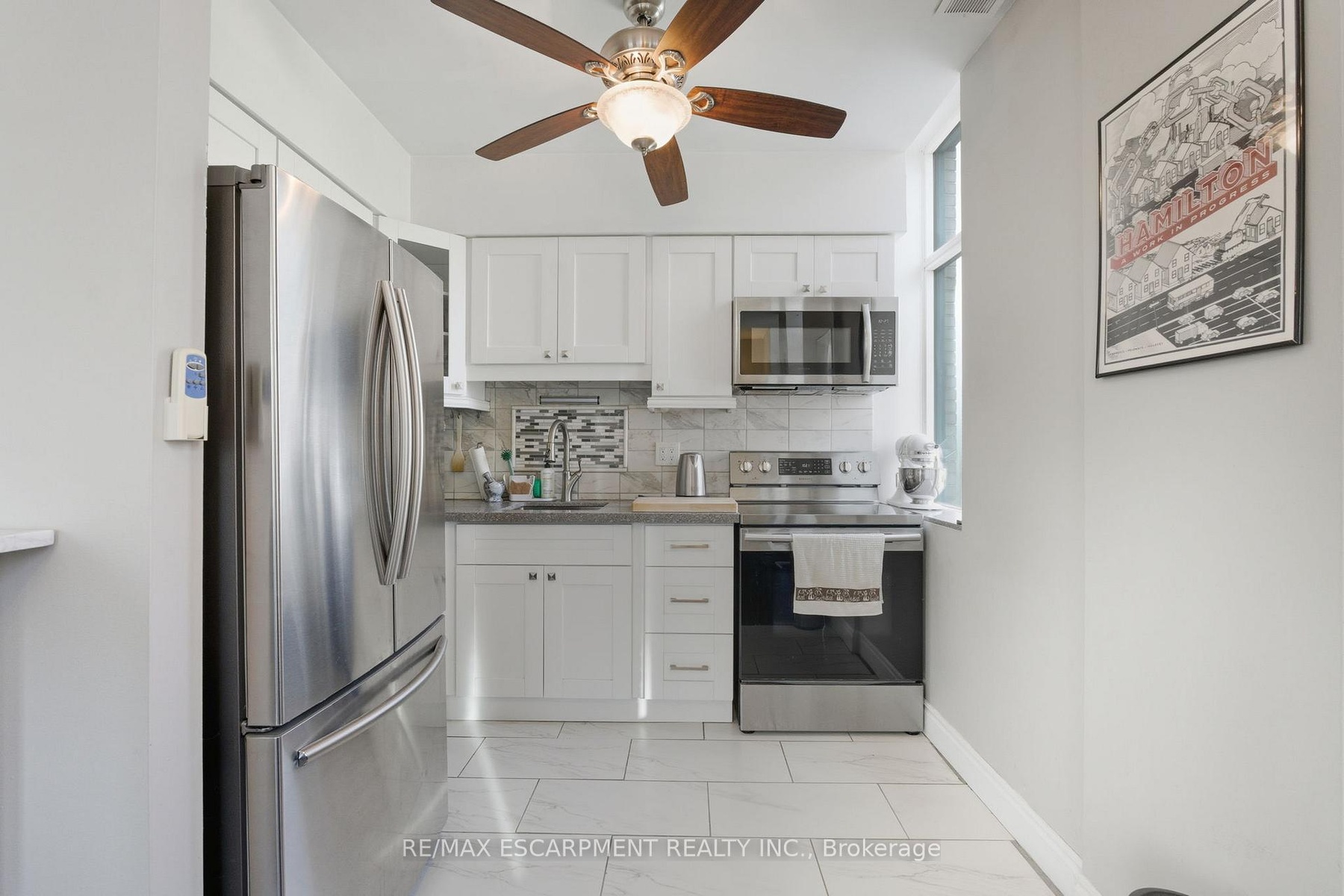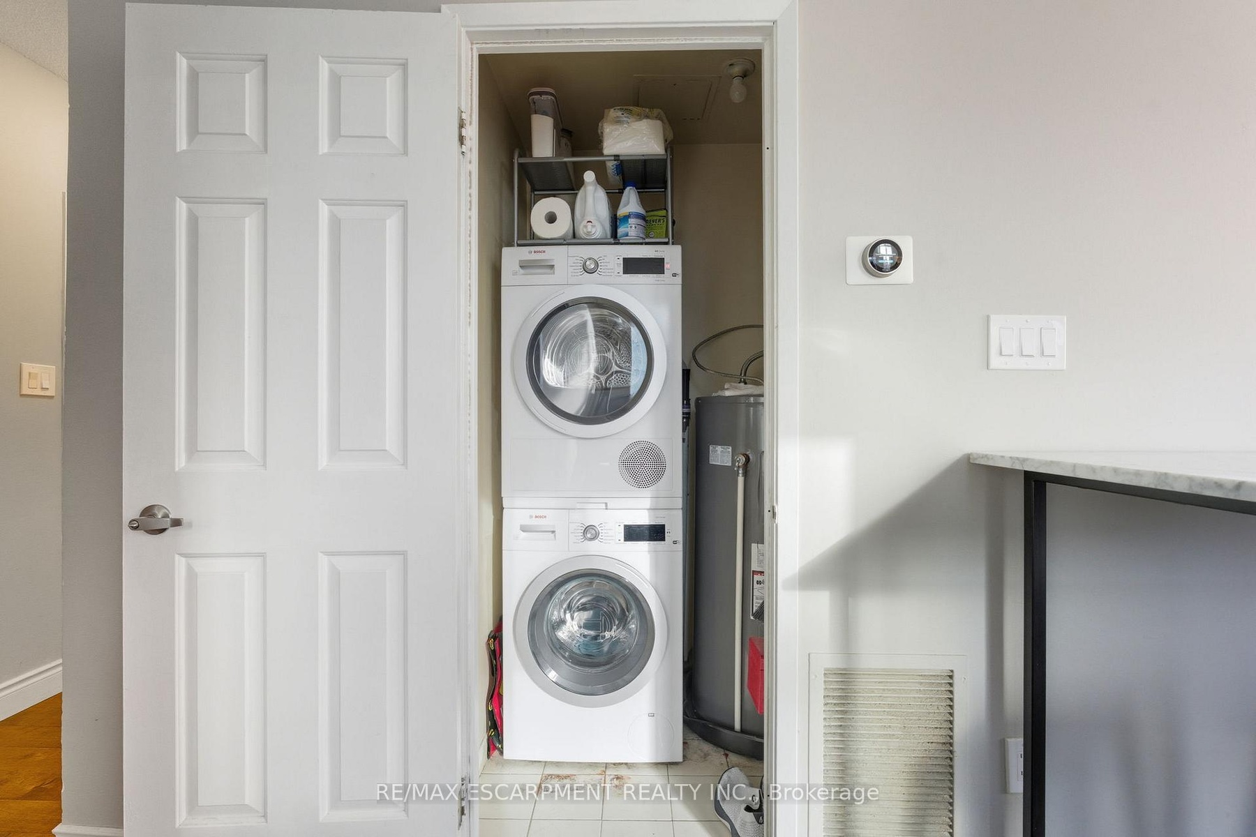 Live in a part of Hamilton history! The beautiful Pigott Building is located right in the city's core. This furnished corner unit on the 10th floor has a breathtaking view of downtown Hamilton. The renovated kitchen features bright white cabinets with soft close feature, beautiful quartz countertops, and a ceramic/glass backsplash. The recently renovated bathroom has upgraded fixtures. Laundry is also conveniently located in the unit. One private parking space and a locker are included. The building offers a gym, party room, and more. Enjoy being walking distance to everything downtown, such as James Street art district, bus terminal, Go Station, First Ontario Centre, Jackson Square, and so much more! Welcome home! RSA.