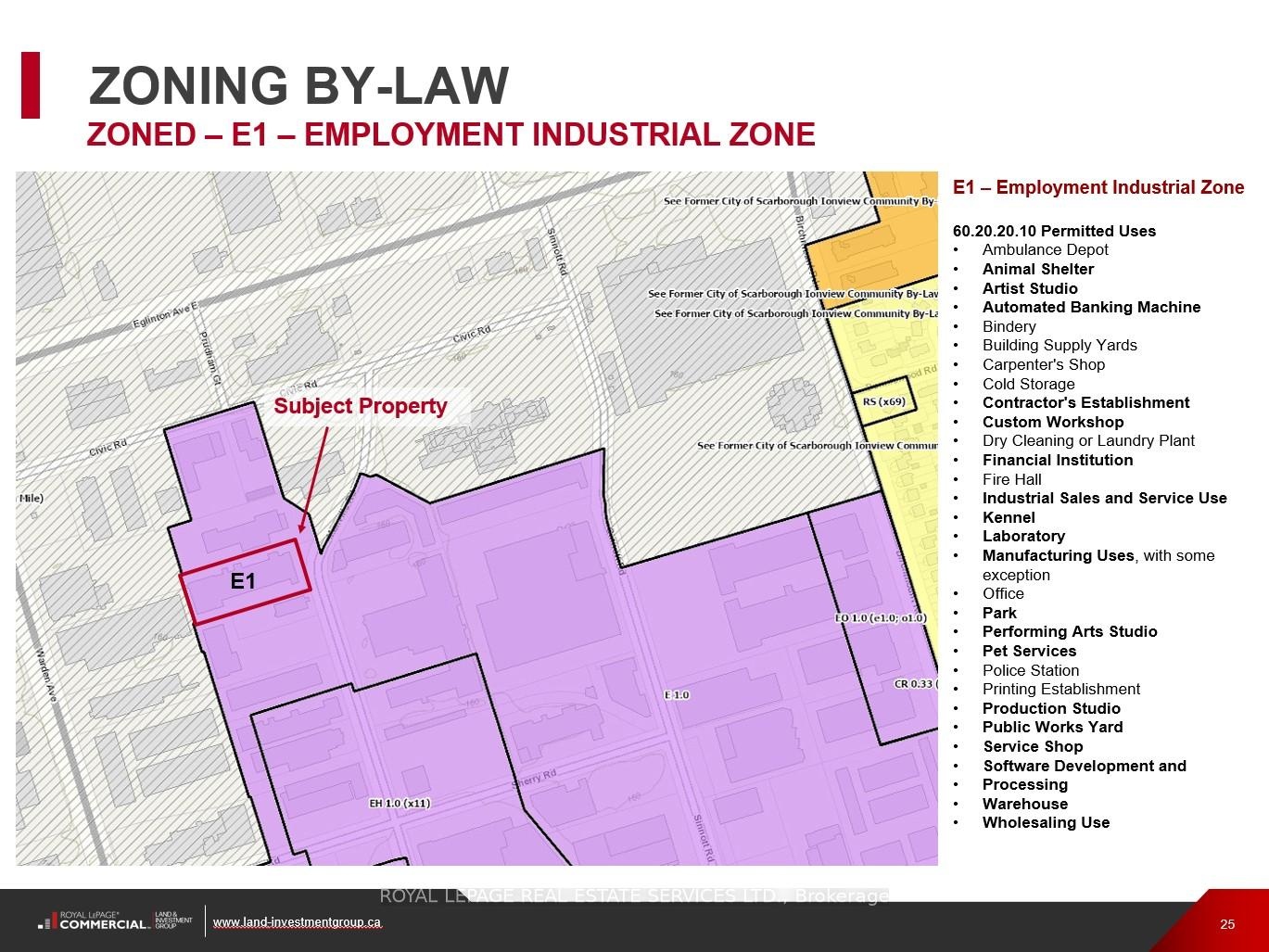 Prime Functional Multi Bay/Tenant Industrial Investment in the Prime Golden Mile Regeneration Area in a prime industrial node near Warden/Eglinton Ave E, surrounded by service industrial and flex uses within 300 meter walking distance to Golden Mile Station on Eglinton/Warden with rent significantly below market with 11 D/I Door and 4 Van Height Door(rare ratio for mid-size buildings), a good mix of tenant rooster with extremely low TMI cost, zoned E1 Functional bays with flexible uses serving Scarboroughs established trade area. Rent being collected is significantly below market, signficant upside. The area is going under significant revitalization including signficant redevelopment of the entire Golden Mile area(~280 Acre) with over 37,000 units across more than 75 towers proposed in the Golden Mile with expectation of 56,000 new residence and 20,000 employment within the immediate area. Do not talk to the tenant.