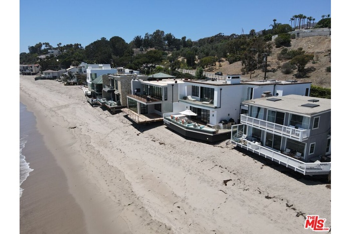 This Spanish contemporary beachfront property is located on the coveted & legendary Escondido beach. It is one of sandiest beaches in Malibu & stretches for miles in the east & west direction. The beach house is positioned facing south, so it captures the breathtaking sunrise over Santa Monica Bay & the sunset over Point Dume. The house was rebuilt in 2016 from the ground up & features a concrete foundation w/ caissons & one of the largest cantilevered decks on Escondido Beach, which sits suspended just feet above the sand allowing seamless private direct beach access. The guest enters the one-of-a-kind beach house via a gated arched entry, which leads to the hardscaped courtyard w/ large spa & mature olive trees. Behind the oversized iron front door reveals the spacious open floor plan w/ high ceilings, recessed lighting & hardwood floors. The kitchen features quartz countertops & high-end appliances, while the living & dining area has a spacious sectional w/ huge tv & plenty of seating for family & guests. Ready for the beach? Then head outside through the floor-to-ceiling sliding glass pocket doors to the expansive oceanfront deck w/ wraparound bench seating, built-in BBQ & private direct beach access. Adjacent to the living area is a cozy media room w/ bar, wine cellar & direct deck access. The second level features two bedrooms w/ Juliet balcony & bunk beds, multiple skylights & a grand oceanfront master suite complete w/ sitting area, balcony & panoramic ocean views from the Queen's Necklace to Point Dume. There is plenty of parking in the two-car garage or designated parking area on the premises & is close proximity to world-class dining, shopping & entertainment. Private membership offering to the Sycamore Tennis Courts available.
