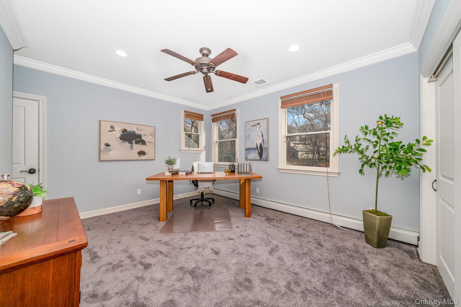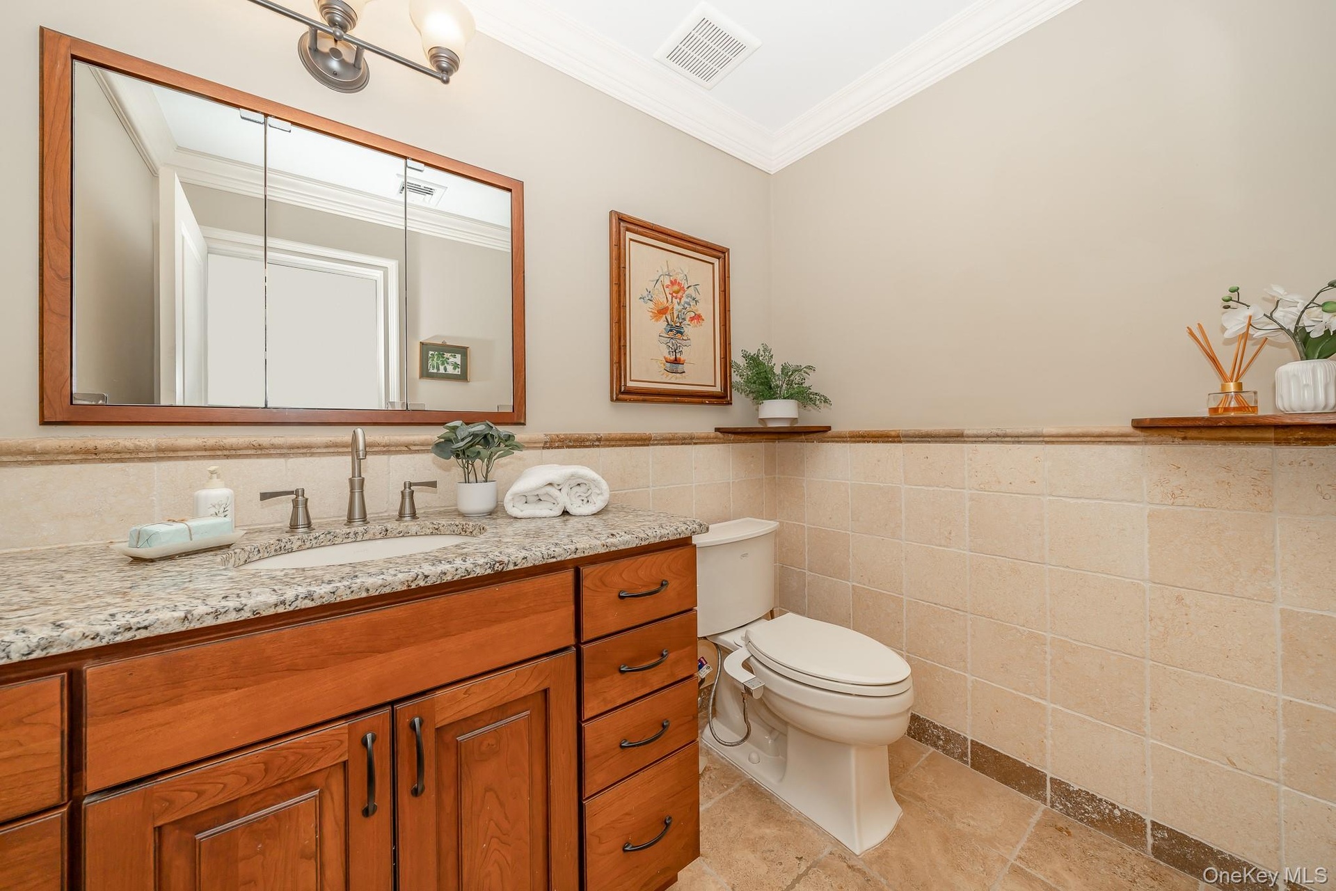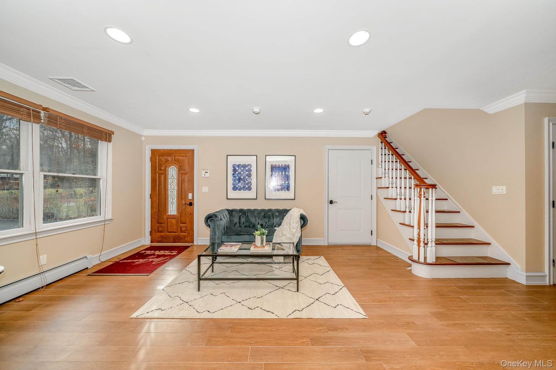 Welcome to 23 Willoughby Path in the Half Hollow Hills SD. Rebuilt from the ground up in 2011 (excluding the garage and basement), this colonial offers your piece of country-club living. A bright great room with tall ceilings opens into a cedar sunroom perfect for entertaining or relaxing without the bugs. The dining room and kitchen sit off the west wing, featuring quality wood cabinetry, granite counters, and stainless-steel appliances. A first-floor junior suite with its own bath and walk-in closet adds easy convenience. Upstairs are three bedrooms (one used as an office) and a full bath. The second floor also features a spacious primary suite, which includes two walk-in closets, a private balcony (made of composite decking) overlooking the yard, and a spa-like en-suite. All bedroom closets have custom systems. Additional features: Extra washer/dryer hook-up on the first floor; 2-zone CAC, 4-zone heat, front/back in-ground sprinklers, new oil tank (2025), new ejector pump (2025), cesspool with overflow (pumped 2011), CAC (serviced 2025), alarm system, walk-in attic + pull-down attic, and a partial/walkout basement with a wine cellar and potential for storage + other creative uses. Outside, the lush 1.25-acre property provides possibilities for entertaining, gardening, or simply relaxing in privacy. With its classic charm, sizeable footprint, and premium acreage, this residence is truly a find in an established neighborhood.
