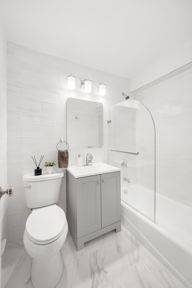 Experience the perfect blend of timeless elegance and modern luxury in this fully gut-renovated, oversized one bedroom plus home office (convertible second bedrooms) one-bathroom residence, ideally situated in the heart of Greenwich Village. Spanning approximately 950 square feet on a single level, this south-facing home is flooded with natural sunlight throughout the day, creating a warm and inviting atmosphere from every angle. Step inside to discover stunning white oak herringbone floors that flow seamlessly through a spacious, open-concept layout. The state-of-the-art kitchen features top-of-the-line appliances, custom cabinetry, and sophisticated finishes that cater to both everyday living and elevated entertaining. The bathroom has been reimagined with luxurious fixtures and modern design, offering a serene retreat within the city. Every detail of this home reflects craftsmanship and quality - from the elegant lighting to the thoughtfully curated materials. Expansive windows frame captivating views of downtown Manhattan, lush courtyards, and iconic Village rooftops, blending the charm of old New York with a contemporary sensibility. Located in a well-maintained post-war, low-rise building with a full-time doorman, elevator, and landscaped courtyard, this residence offers both privacy and convenience. Pet-friendly and impeccably managed, the building provides a true sense of community in one of Manhattan's most desirable neighborhoods. Just steps from Union Square, Washington Square Park, and the West Village, this location offers the very best of downtown living - world-class dining, boutique shopping, cultural landmarks, and easy transportation access all at your doorstep. Don't miss this rare opportunity to own a sun-drenched, meticulously renovated home in the heart of Greenwich Village. Schedule your private showing today and experience sophisticated city living at its finest.