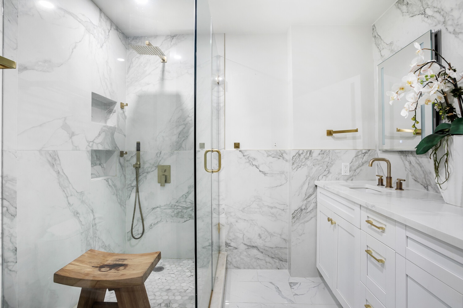 Beautifully renovated and thoughtfully designed, this converted 3-bedroom (2 Bed + Home Office), 2-bath home spans 1,328 square feet, featuring herringbone floors throughout and is bathed in bright southern light. The open chef's kitchen features custom shaker cabinetry, stainless steel appliances including a Bosch cooktop and dishwasher, and a sleek Corian island perfect for entertaining. The expansive 30 foot living/ dining area offers an inviting layout with sun-filled south exposures. The primary suite includes a wall of custom California closets and an ensuite marble bath with a double vanity and spa shower. The second bedroom is generously proportioned with a custom walk-in closet and access to a bathroom finished with stylish imported tile and soaking tub. An additional room provides versatility as a home office or guest room, complete with a built-in Murphy bed. PHOTOS VIRTUALLY STAGED. FUTURE ELECTRICAL UPGRADES CURRENTLY UNDER CONSIDERATION WILL ALLOW FOR IN-UNIT WASHER/DRYERS ONCE FINALIZED. W/D NOT CURRENTLY INSTALLED.