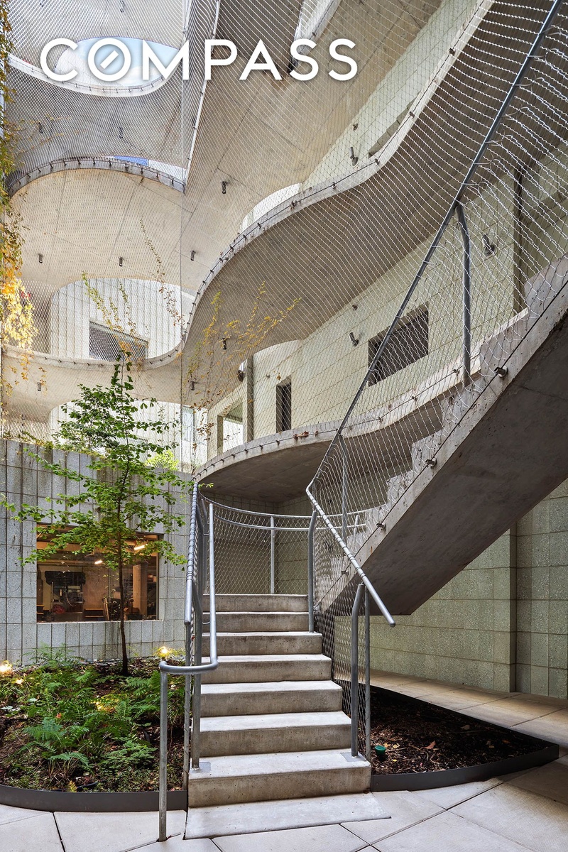 The building’s signature experience greets you whenever you come home: An open central atrium clad in wire mesh, which allows you to look up at the walkways traversing each of the five floors. More than just a grand gesture, the design is meant to foster community. Unlike other condominiums with enclosed corridors, which render every other floor and its residents invisible, the people that live in 450 Warren see each other coming and going across the floors everyday, so that they can wave hello and spark conversations.