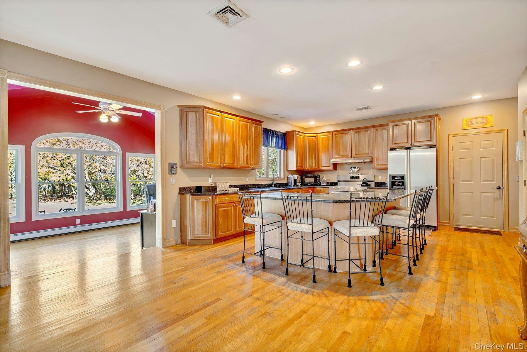 145 Baldwin Place, a truly warm and inviting 5 bedroom, 2.5 bath home situated in the Cutchogue Park District, on a 2-acre corner lot, and in the heart of the North Fork. Upon arriving, you'll notice a charming covered mahogany front porch. As you step inside, you are greeted by a sun-drenched foyer with cathedral ceilings. To the right, a formal dining room. To the left, a flex room that can serve as a den, library, family room or possible main floor bedroom. Continuing towards the back of the house is an open concept living room, complete with a cozy woodburning fireplace, that seamlessly blends into the expansive chef's kitchen. An oversized island offers plenty of workspace, while a walk-through pantry, laundry room and mudroom provide practical solutions for everyday living. A year-round sunroom offers a tranquil space to enjoy views of the large backyard and patio. Upstairs is a spacious primary bedroom with vaulted ceilings, multiple closets and a large ensuite bathroom plus four additional bedrooms and a full bath. There is also a full walkup attic, an unfinished basement with 9' ceilings and an attached two car garage - these spaces offer endless potential for storage or customization to suit your needs. This home is just a few blocks from the water, providing direct access to the serene Peconic Bay. This year-round home or vacation retreat, with plenty of room for a pool and guests, can be your North Fork dream come true!