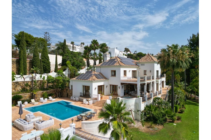 This grand Mediterranean estate, nestled in the peaceful Paraiso Alto area, offers the ultimate in luxury living and entertaining. Perfect for a large family, a luxurious retreat, or even a boutique hotel, the property comprises of a meticulously designed main house, a recently renovated guest house, and staff apartments.