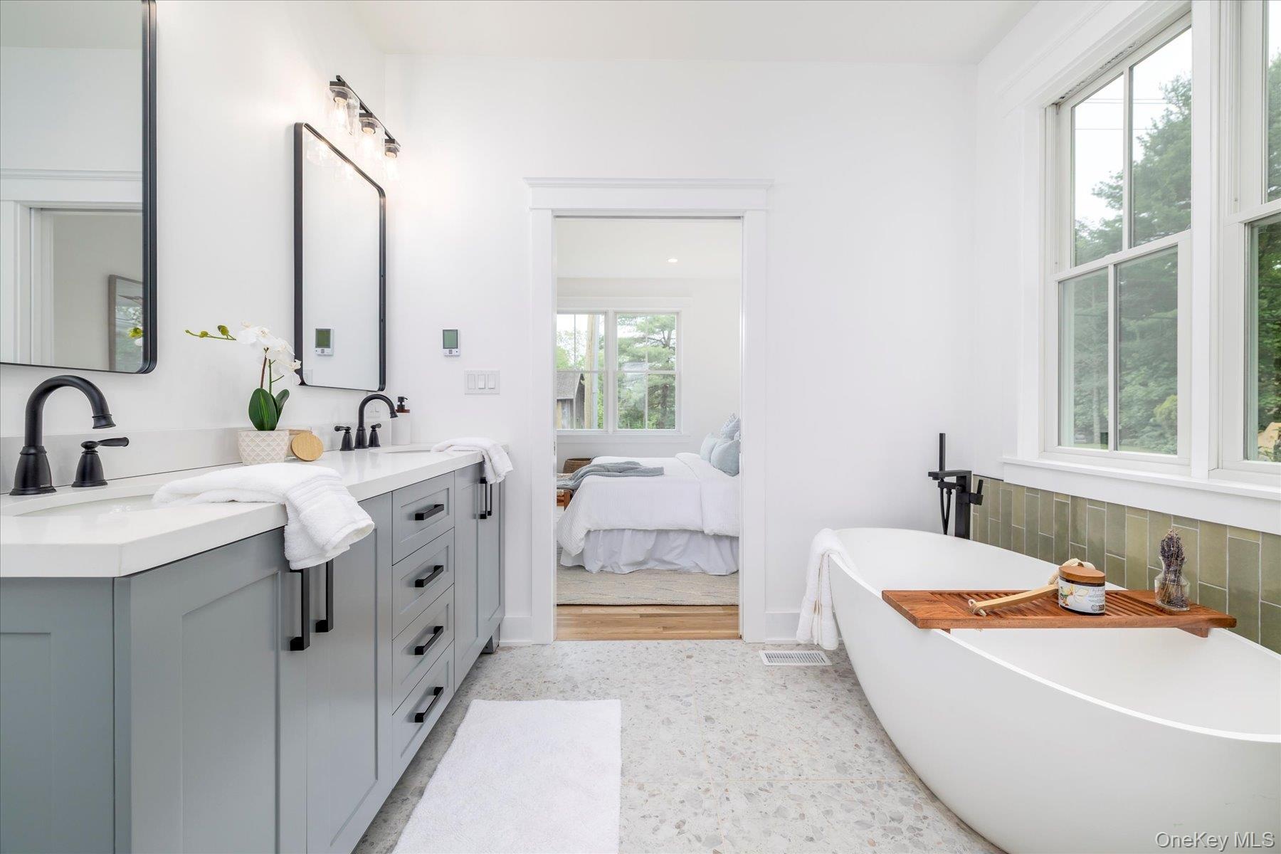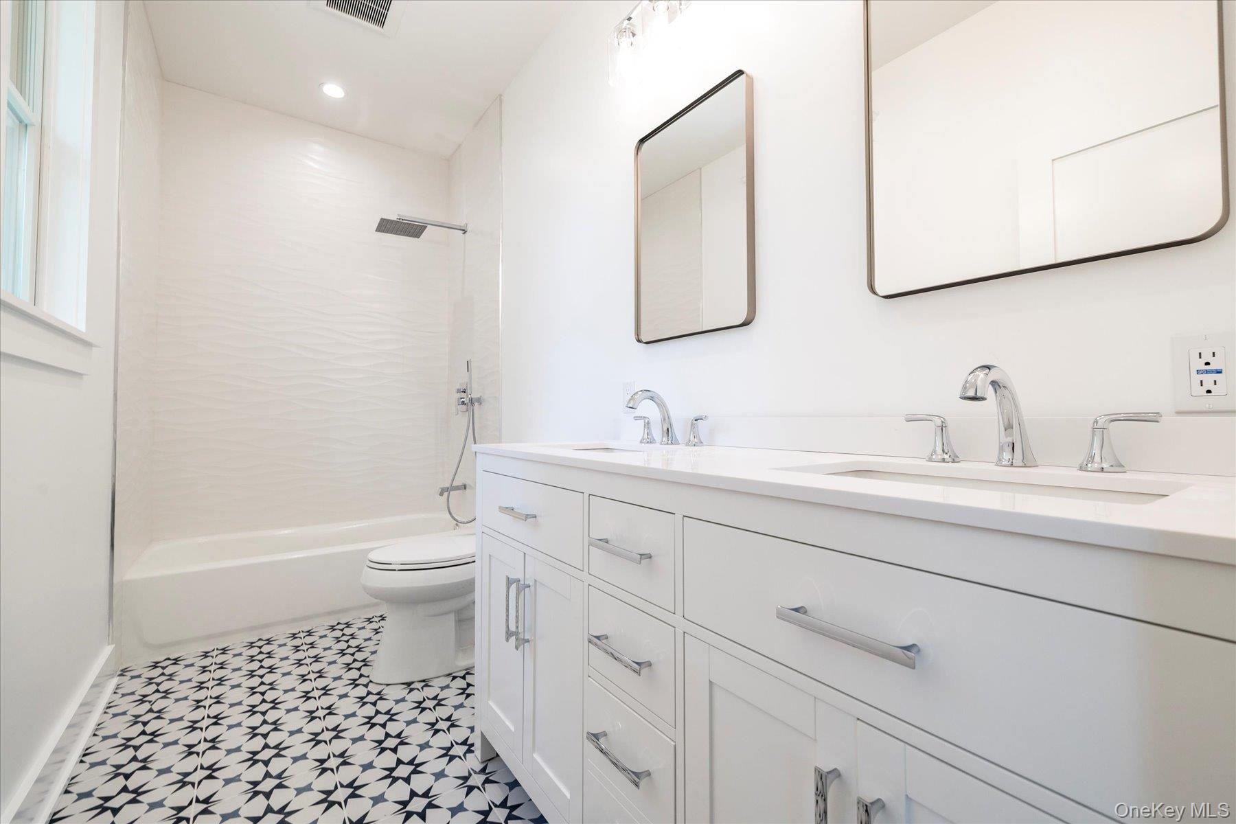 Upstairs, you'll find a second primary suite with a walk-in closet and dual vanity bath, a junior suite, two additional bedrooms served by a beautiful full bath, and a second laundry room—ensuring convenience and flexibility for the homeowner or guests.