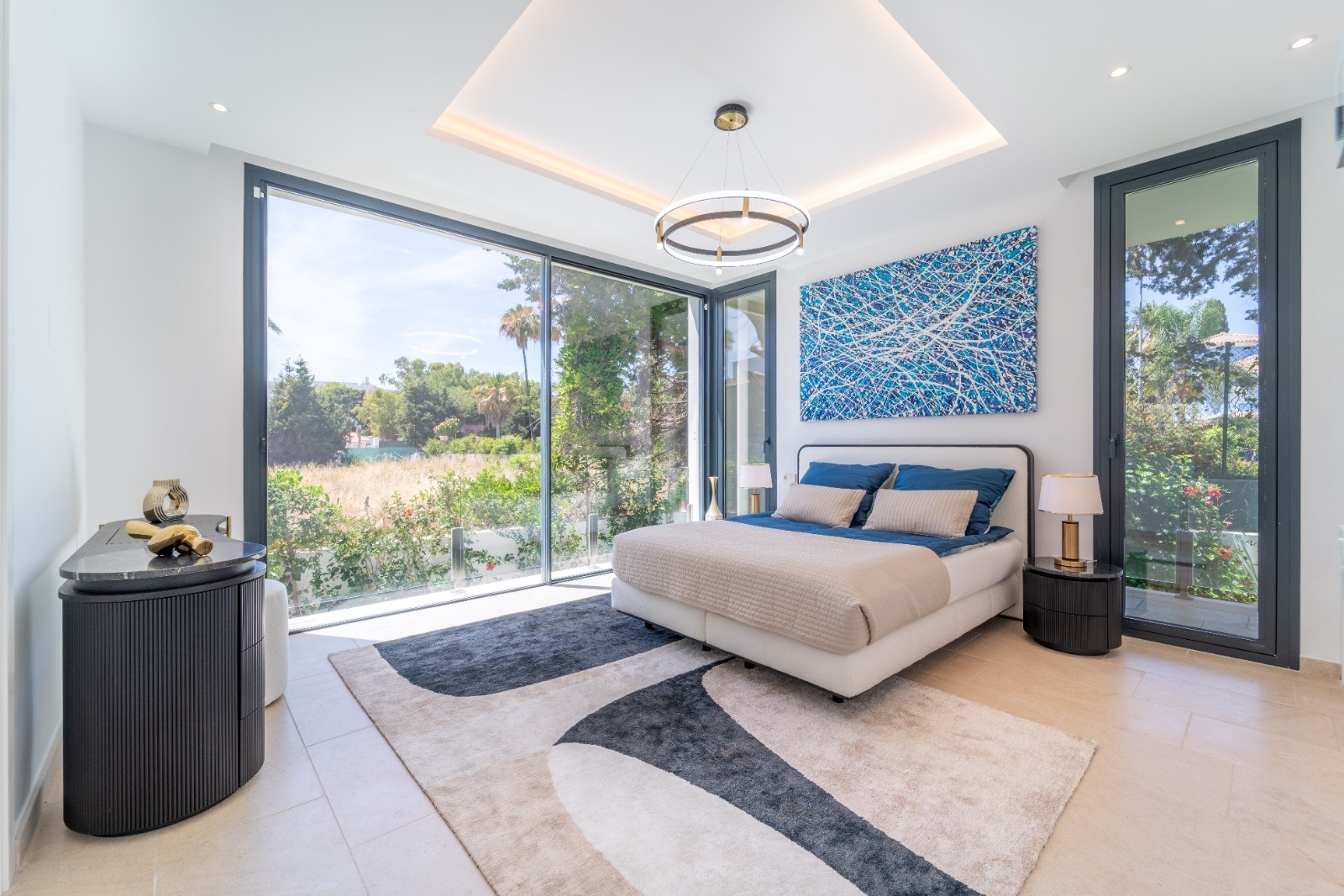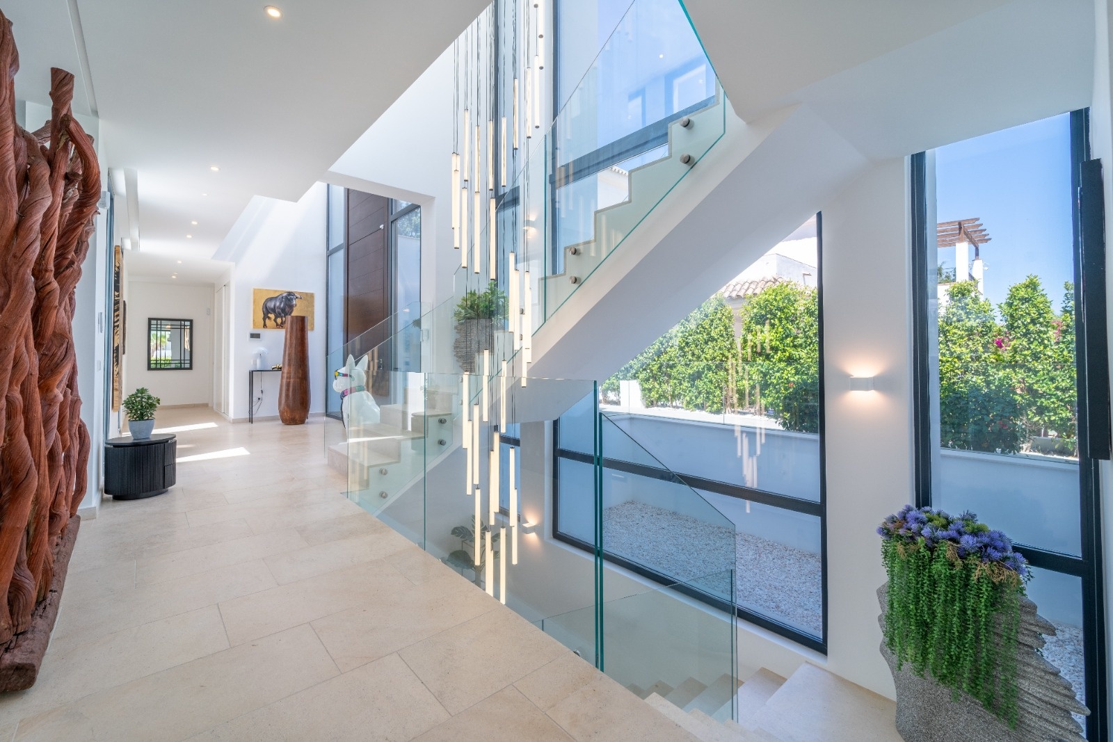 The property includes ample parking facilities that cater to multiple vehicles, adding an extra layer of convenience to this prestigious home. Located just a stone's throw from the elite Real Club de Golf Guadalmina, golf enthusiasts can enjoy easy access to world-class fairways and club facilities. Additionally, the vibrant Puerto Banús is nearby, offering luxury shopping, gourmet dining, and lively entertainment options. For a more relaxed pace, you can explore the nearby Los Flamingos Golf Club or take a short drive to the historic Marbella Club Hotel.