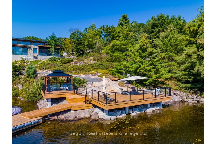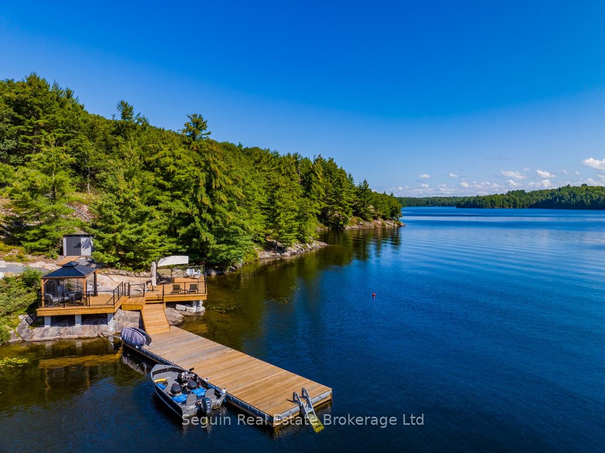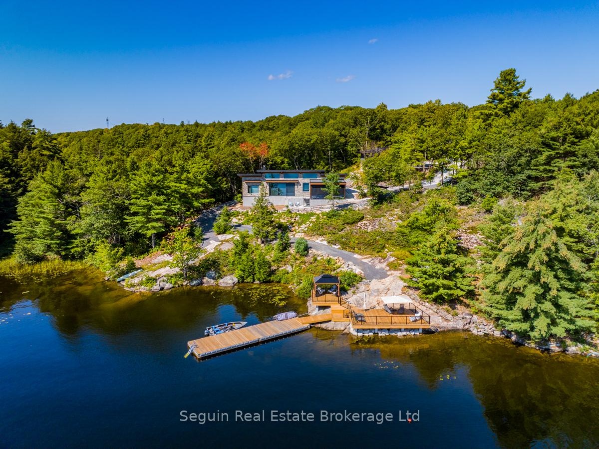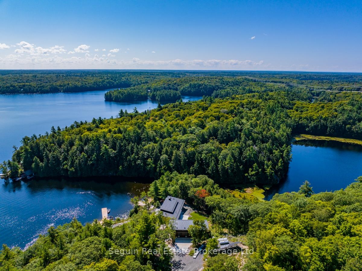 Year round Lakehouse living on 112 acres with over 1200 ft of clean and clear hard bottom shoreline. Gently forested topography & Canadian Shield outcroppings abound. Own ultra extreme privacy as this rare property is surrounded by hundreds of acres of additional Crown and conservation lands. Enjoy a luxurious 4-Bed, modern, OFF-GRID, 4-Season home, plus 2200 ft2 climate-controlled Triple-Garage/Workshop, & over 1300 ft2 of shore + floating dock space. The ultra energy-efficient design & extensive solar infrastructure has no monthly hydro or water bills & permit 'Green" living at its finest. The high-end finishes and attention to detail are apparent as soon as you approach the home. ICF construction with maintenance-free stone & steel exterior, plus extensive landscaping. There is a concrete driveway from garage to house & drive access right down to the waterfront. South-east exposure means spectacular sunrises, a consistent gentle breeze & all-day sun, which can also be enjoyed from a HUGE covered porch complete with motorized Phantom screens. Enter the home to find beautiful polished concrete floors, custom Miralis cabinetry throughout all the room & closets, motorized sunshades/blinds with custom draperies. Spectacular granite, slab porcelain & unique woodwork accent the spa-baths & open floor plan that is perfect for entertaining. Internet & satellite allow remote work from this personal resort! There is opportunity to expand to suit any family & hobby as planning approvals will permit up to 8,000 ft2 of total structure, including two-430 ft2 guest cottages.