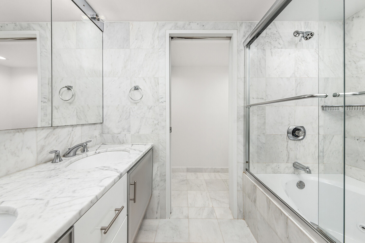Two gracious primary suites offer excellent storage, while a 15' x 15' lofted flex space serves perfectly as a home office, library, or guest suite. Two renovated marble bathrooms include a spa-style Jacuzzi soaking tub, enhancing the sense of retreat.