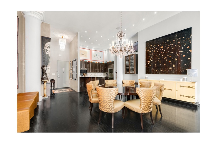 Chelsea Grand Loft - Rental in Iconic Pre-War CondominiumThis remarkable 1,512 sq ft designer loft is located in one of Chelsea's most prestigious full-service pre-war condominiums - a 19-story architectural landmark known for its grand proportions, impeccable service, and discerning residents, including artists, tastemakers, and notable New Yorkers.This one-of-a-kind, fully furnished residence is available for lease. Distinctive Character & ScaleA dramatic entry opens into a voluminous, gallery-like space with soaring 14-foot ceilings, original pre-war columns restored to their former elegance, and ebonized hardwood floors.