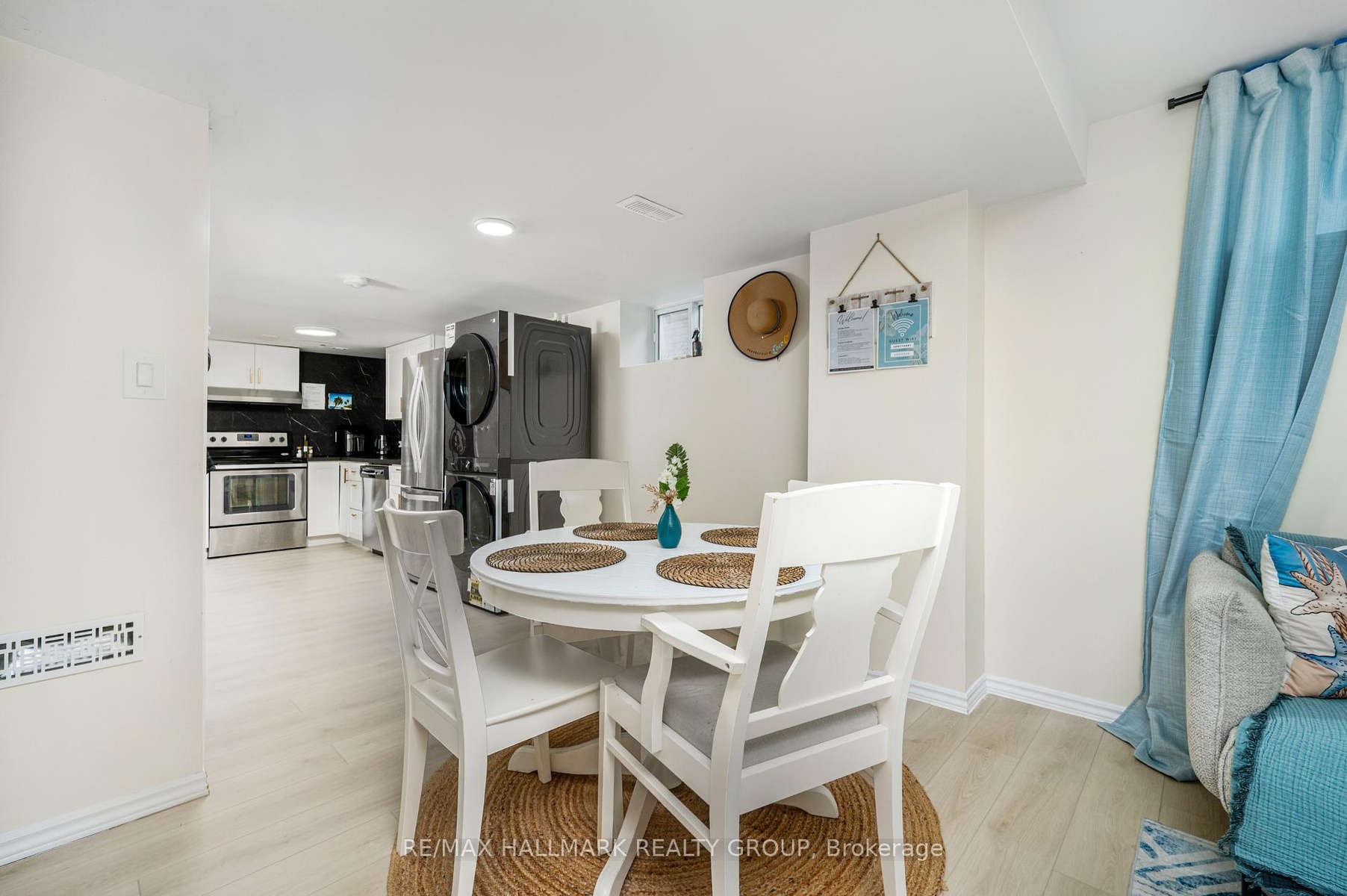 Welcome to this beautifully designed one-bedroom lower-level apartment located in a quiet, family-friendly neighbourhood in Embrun, just 10 minutes from Calypso Waterpark and within easy commuting distance to Ottawa. This stylish and fully self-contained suite features a private side entrance, spa-inspired bathroom, in-suite laundry, and thoughtfully curated tropical-chic decor throughout. The spacious bedroom offers a queen-sized bed, luxury linens, blackout curtains, and calming coastal-inspired finishes. The modern bathroom includes a rainfall shower, marble tiles, LED mirror, and elegant gold accents, providing a spa-like experience at home. The full kitchen is equipped with stainless steel appliances, cookware, and dining essentials, making it ideal for everyday living. An open-concept living and dining area offers a comfortable and inviting space to relax or entertain. Additional highlights include full-sized in-suite laundry, fast Wi-Fi, free street parking is always available. This is a smoke-free, pet-free home, perfect for professionals, couples, or anyone seeking a quiet and modern retreat just outside the city.