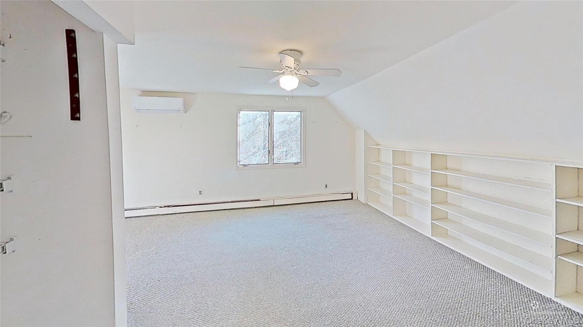 Set back from the street with a wide driveway providing plenty of parking, the front entrance brings you inside to a large, sunlit living room with a wall of windows. The open flow continues to the dining room, with sliding glass doors leading to the backyard, and an open kitchen with stainless steel appliances, surrounded by ample cabinetry and counter space. Off the kitchen is a warm and welcoming family room with natural wood paneling, large windows, and a wood-burning stove set in a stacked stone alcove – the perfect spot for entertaining or getting cozy on chilly nights.