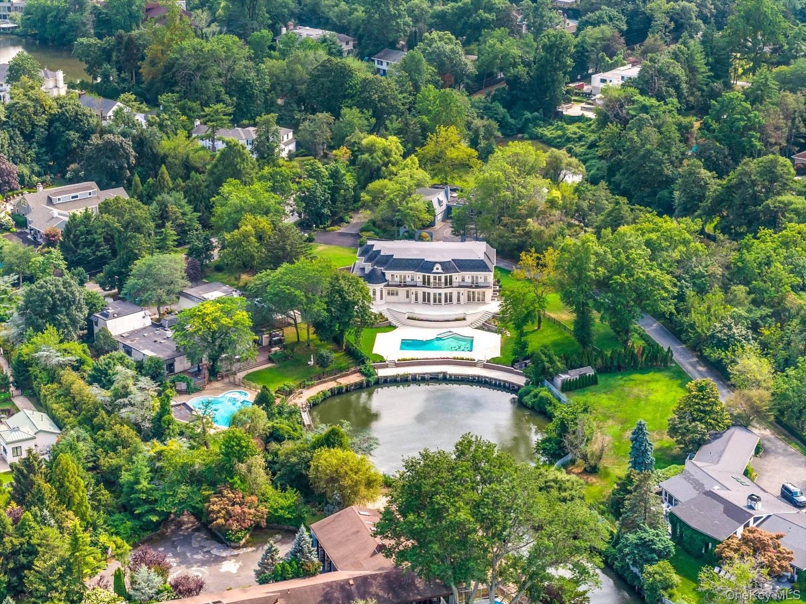 Experience unparalleled luxury and craftsmanship in this spectacular new construction nestled on over an acre of pristine waterview property in the heart of Kings Point. This one-of-a-kind custom-built estate spans approximately +/- 8,000 square feet of sophisticated living space, artfully designed for both grand entertaining and serene everyday living. From the moment you arrive, the home impresses with its timeless architectural design, extensive millwork, and impeccable finishes. Soaring ceilings and walls of glass flood the interior with natural light and frame breathtaking panoramic views of Manhasset Bay. Designed for effortless living, this stunning residence offers 6 spacious bedrooms and 5.5 designer bathrooms. The main floor boasts expansive formal living and dining rooms with direct water views, a large family room, Library and a state-of-the-art gourmet kitchen featuring top-of-the-line appliances, custom cabinetry, and a large center island perfect for entertaining. Wake up to peaceful water vistas in the luxurious primary suite, complete with a spa-like en-suite bath and generous closet space. Secondary bedrooms offer flexibility for guests, or office use, all thoughtfully laid out to maximize space and privacy. Set on a private lagoon with direct access to Manhasset Bay, this home is a kayaker’s paradise and an outdoor enthusiast’s dream. The beautifully landscaped grounds are an entertainer’s haven, featuring an oversized deck, in-ground swimming pool, and lush green space ideal for hosting gatherings or relaxing in your own private sanctuary.