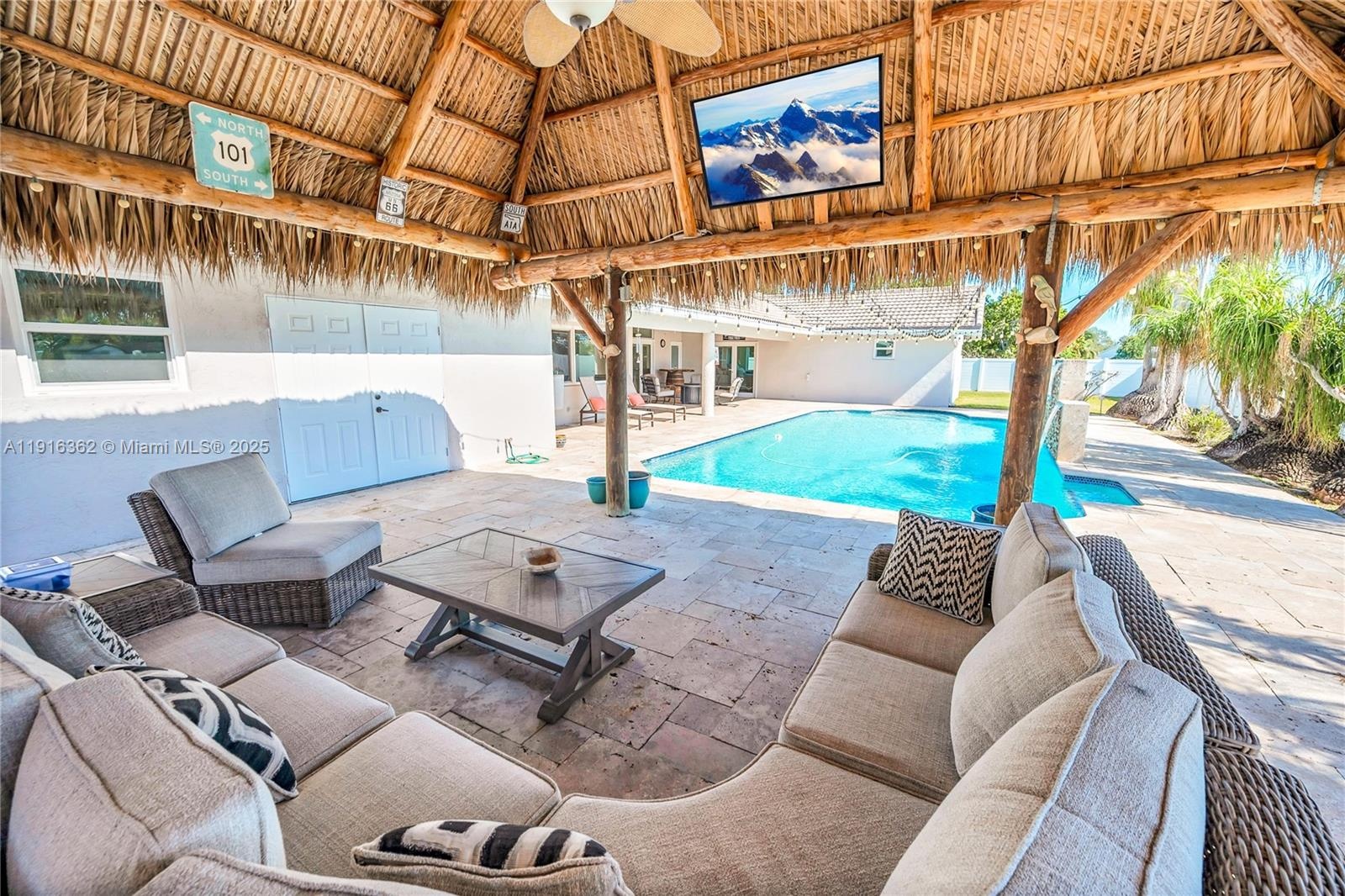 A tropical oasis perfectly positioned on an expansive, private lot. This home is built for the ultimate Florida lifestyle! Offering soaring vaulted ceilings and an abundance of natural light throughout, the generous floor plan features an open kitchen with oversized family room ideal for lounging or entertaining. The party can spill onto the resort style backyard serving as a personal tropical retreat with a stunning pool area, custom tiki hut and an impressive built-in summer kitchen, making every weekend feel like a vacation. Enjoy your "waterfront" primary suite overlooking the pool area. A versatile loft provides the perfect spot for a secluded home office, media room, or playroom. Other features include Metal Roof, 2 car garage, impact windows and new appliances.