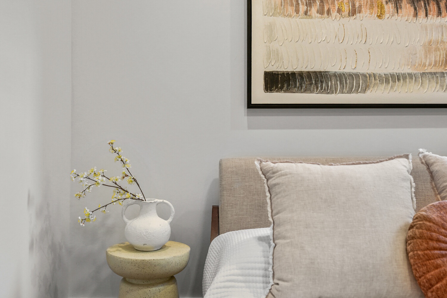 The centerpiece of the home is the brand-new chef's kitchen featuring a stunning waterfall-edge quartz peninsula-perfect for casual dining & entertaining. This sleek peninsula anchors the kitchen and seamlessly blends into the living area. The kitchen has top-tier appliances including a Wolf range, Sub-Zero refrigerator, custom cabinetry and modern fixtures.