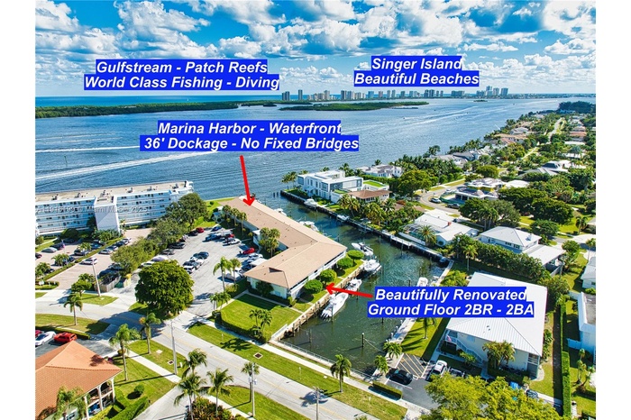 WATERFRONT Hidden Gem on the Intracoastal! Beautifully Updated First Floor Unit in Marina Harbour. No Fixed Bridges, Ocean Access and Minuets to Peanut Island. Boat Slip Lease Available $9/ft up to 36’; Short Wait; Boat Lift Install W/HOA approval. Tile Flooring Throughout, New A/C, Fresh interior Paint, Granite Counters, and Stainless Appliances. In-unit Washer/Dryer and Dishwasher Availability. Community features Coin-op Laundry, Saltwater Pool W/Direct Views of Intracoastal, Travertine Tile and Grill Area. Recent Roof, No Assessments. Close to Marinas, Parks, Dining. Village of North Palm Beach Available Amenities: Golf Club, Swimming Pool, Boat Trailer Storage/Ramp Access. Watch the 4th of July Fireworks and Boat Parade Steps from Your Front Door. Safe Harbor Marina steps away!