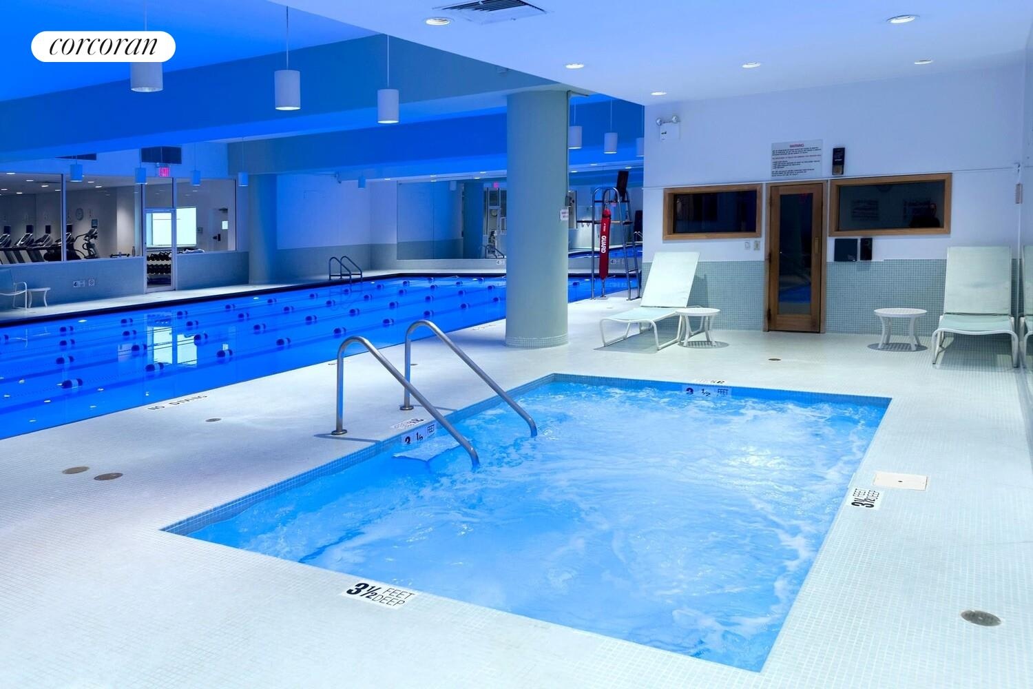 The top-notch amenities are:24-Hour doorman and concierge, state-of-the-art health club featuring a double-level gym overlooking the 70 ft swimming pool, a whirlpool Jacuzzi, multiple sauna rooms, a racquetball/half basketball court, ping pong/recreational area, sitting/television room, and locker rooms. Large central laundry room, parking garage (direct elevator access), a private driveway, and a landscaped plaza.