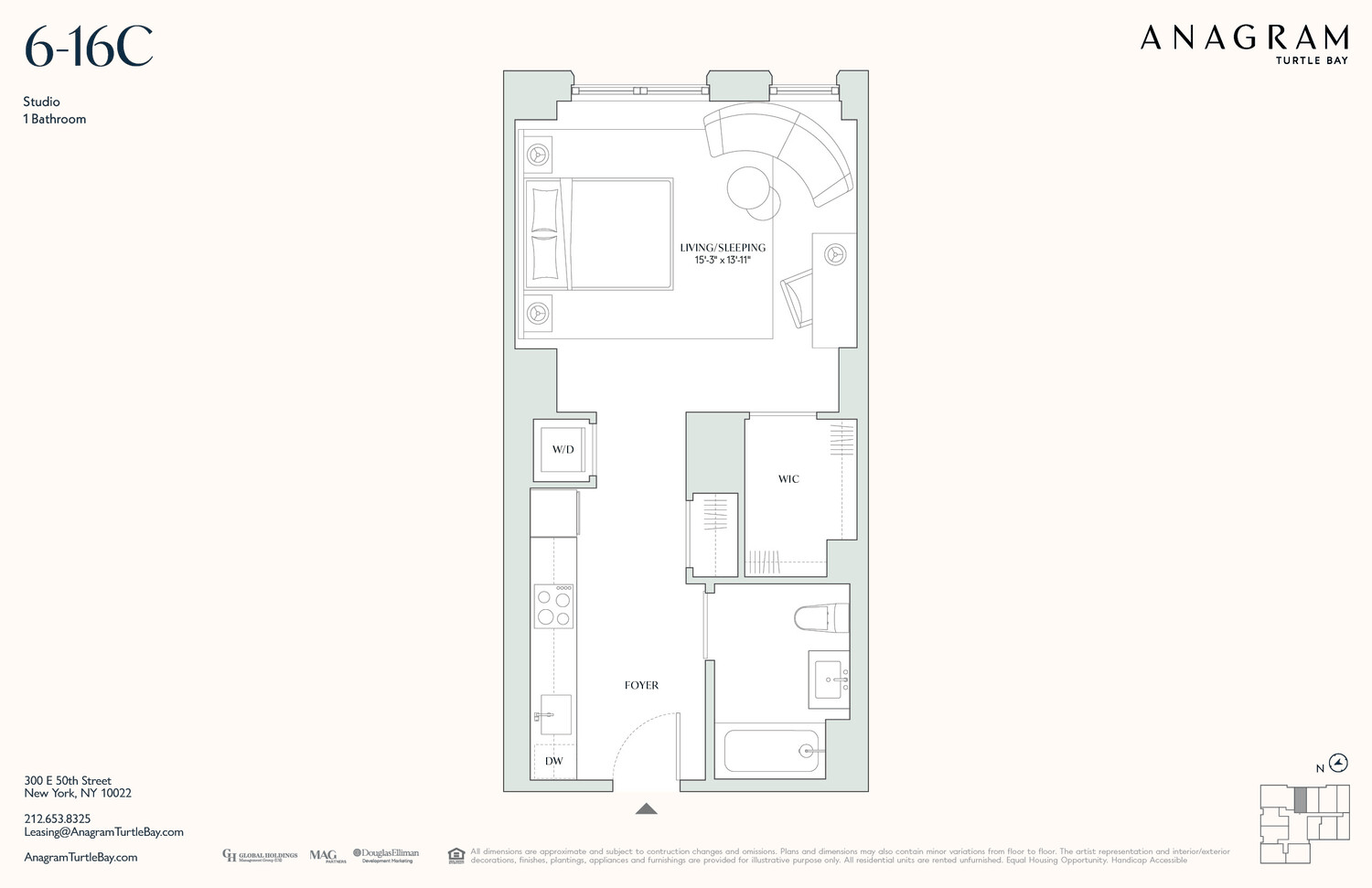 Anagram Turtle Bay is a refined residential experience shaped by the energy of New York City. Ideally situated in one of Manhattan's most convenient neighborhoods, this 23-story tower features a striking masonry facade and is surrounded by top restaurants, shops, and pocket parks-just moments from major corporate hubs.