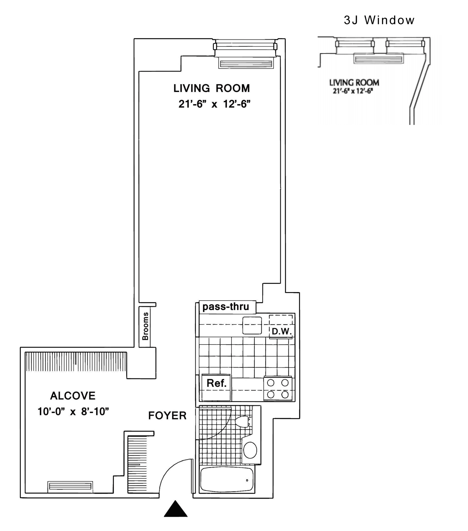 Gorgeous over-sized studio apartment with separate sleeping alcove. Extra-high ceilings and ample closet space. Recently renovated pass-thru kitchen, bathroom and oak strip floors in this residence. For your convenience, laundry is located on every floor. The use of flex walls or any space alterations are not permitted.