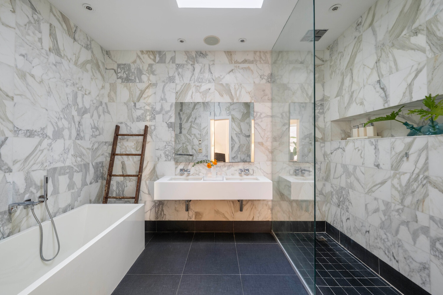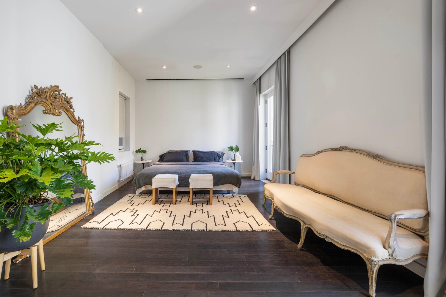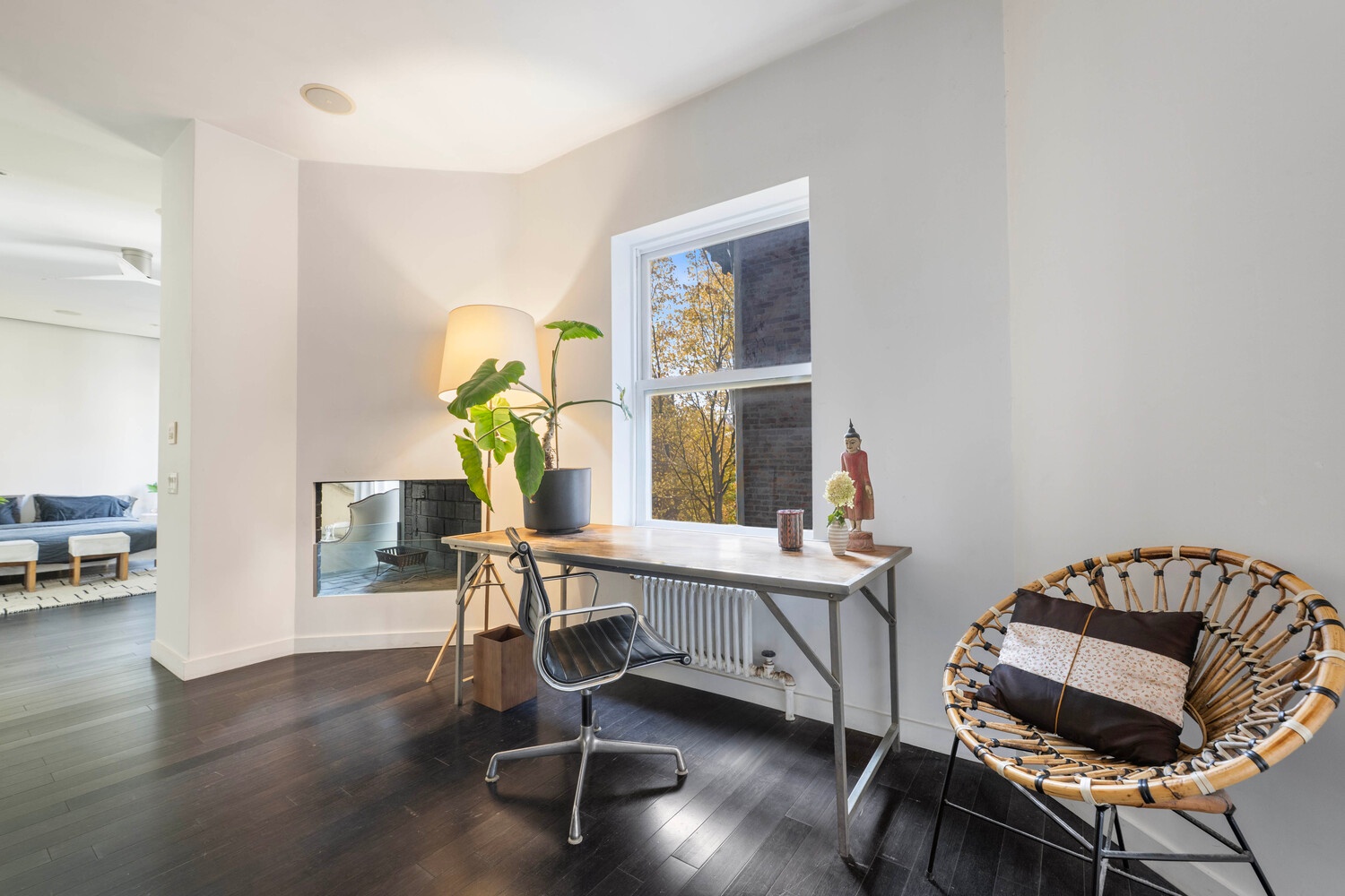 The tranquil primary suite features a dedicated home office, generous storage, and a spa-like bath. Upstairs, your private rooftop sanctuary offers open sky views and a peaceful retreat above the Village's iconic tree-lined streets.