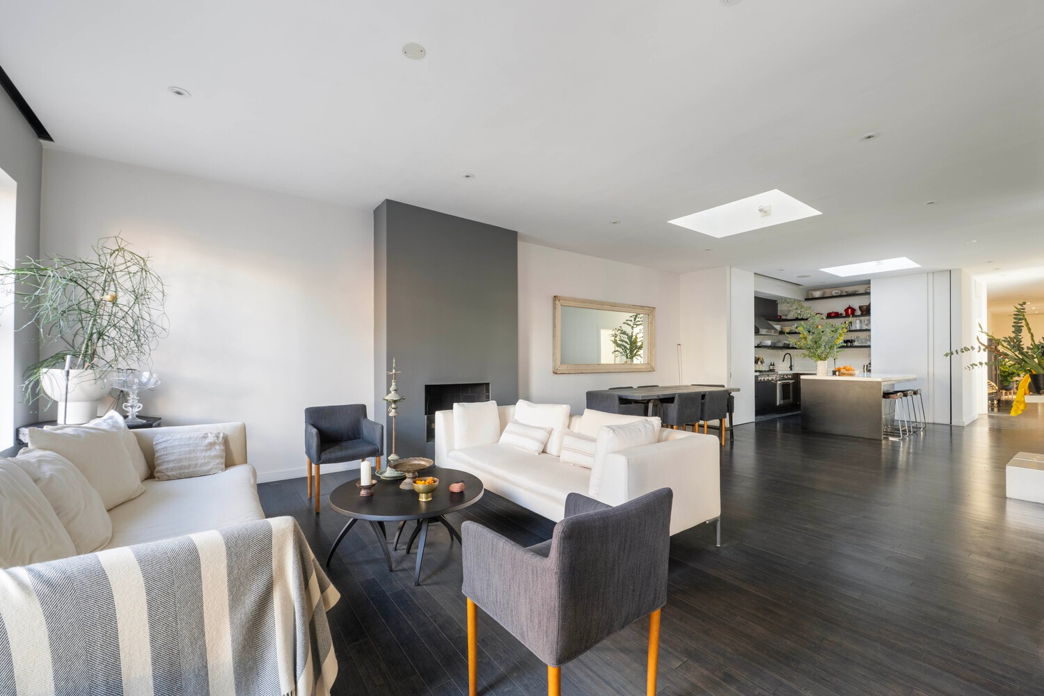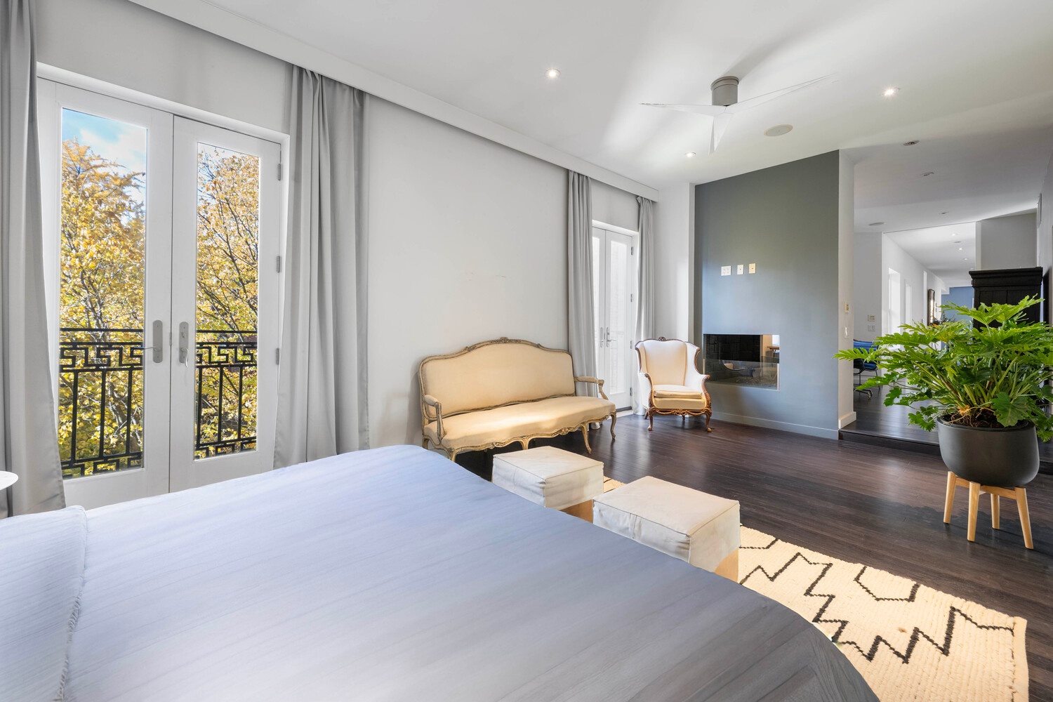 This home beautifully blends historic brownstone charm with refined modern luxury. Three wood-burning fireplaces, soaring ceilings, and skylights throughout create a warm, light-filled ambiance. The expansive living and dining areas are ideal for both entertaining and quiet evenings at home, while the custom chef's kitchen showcases top-quality finishes and thoughtful design.