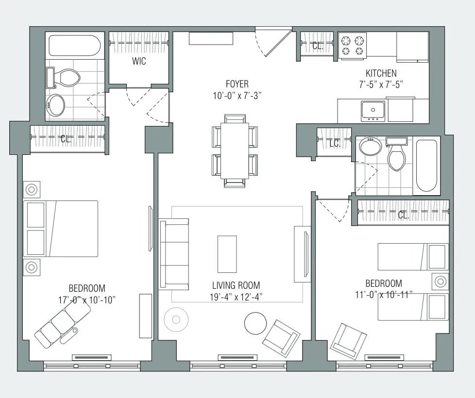 Each residence at The Serrano, meticulously crafted, is a unique masterpiece. The collection includes one, two, and three-bedroom layouts, many of which offer city skyline and East River views and the convenience of walk-in closets. The custom kitchens have top-of-the-line stainless steel appliances, opulent Quartz countertops backsplashes, adding luxury to everyday living.
