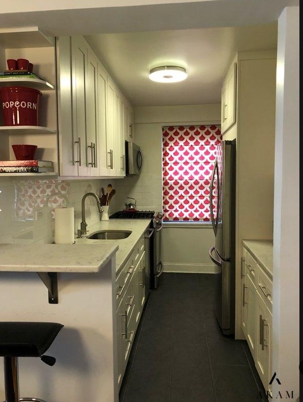 This extra large one bedroom has a beautifully renovated kitchen and bath and is ready for move in. The windowed kitchen is spacious and stylishly designed, with stainless appliances, marble counters, and a convenient breakfast bar. There is a separate entry/dining area for dinner parties or potential home office space. The bedroom has 2 bright exposures and is large enough for a home office area as well. Let's not forget the amazing California Closets! This home has it all! (Note: Dining room table must stay). 200 East 36th Street is conveniently located near many restaurants and many neighborhood amenities. It also has easy access out of the city to Long Island and airports and locally within NYC. No pets. Building features a 24-hour doorman and live-in resident manager. Fees as follows: $120 application fee $500 move in fee $500 move in deposit (refundable) $65 digital submission fee $34.25 app admin fee